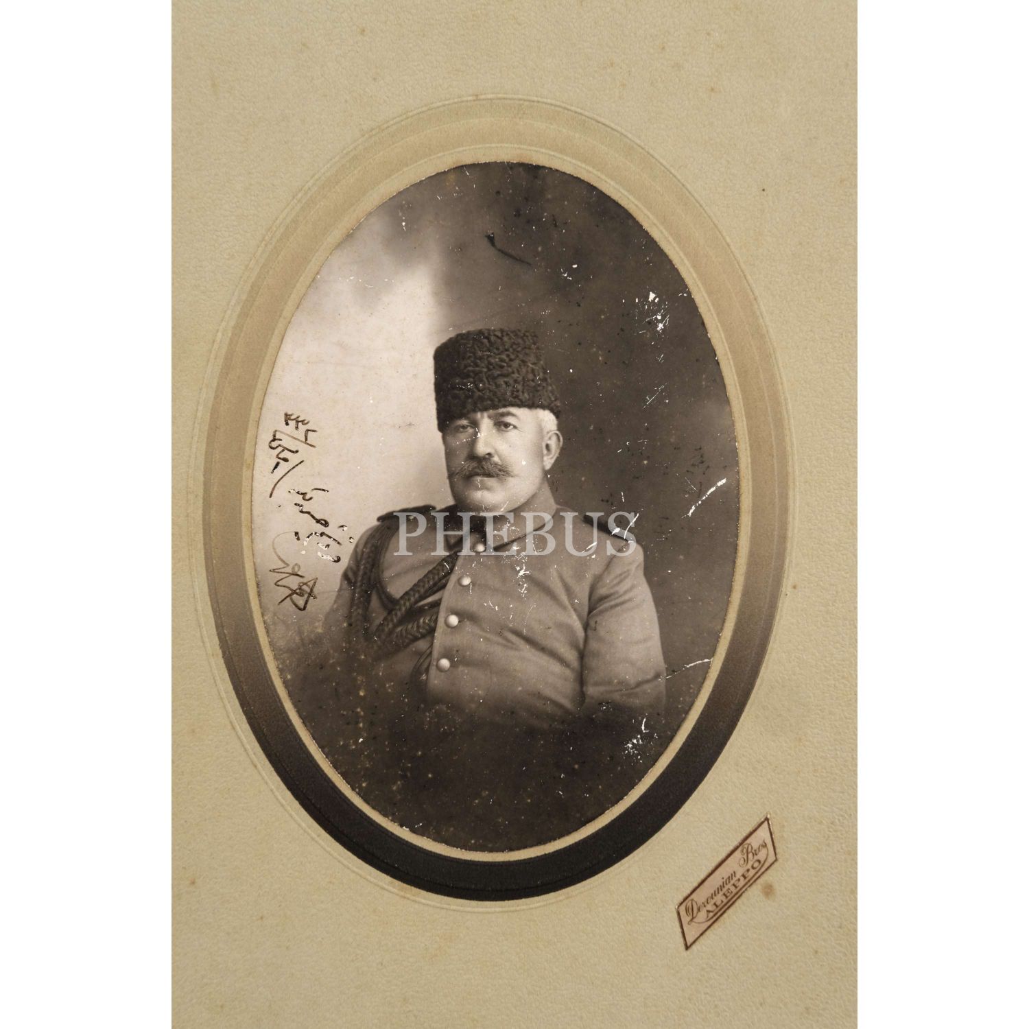 Osmanlı Devleti´nde I. Dünya Savaşı sırasında sadrazamlık yapmış Ahmet İzzet (Furgaç) Paşa´nın, Halep´te Derounian Bros. Fotoğrafhanesi´nde aldırdığı ithaflı ve imzalı portre fotoğrafı, 17x23 cm...