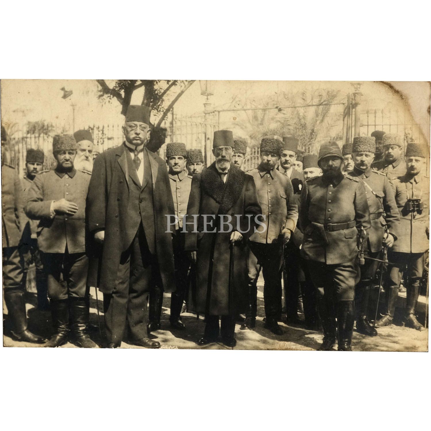 Cemal Paşa ve Fahreddin Paşa´nın da aralarında bulunduğu, asker ve devlet adamlarından oluşan heyetin hatıra fotoğrafı, 24x15 cm...
