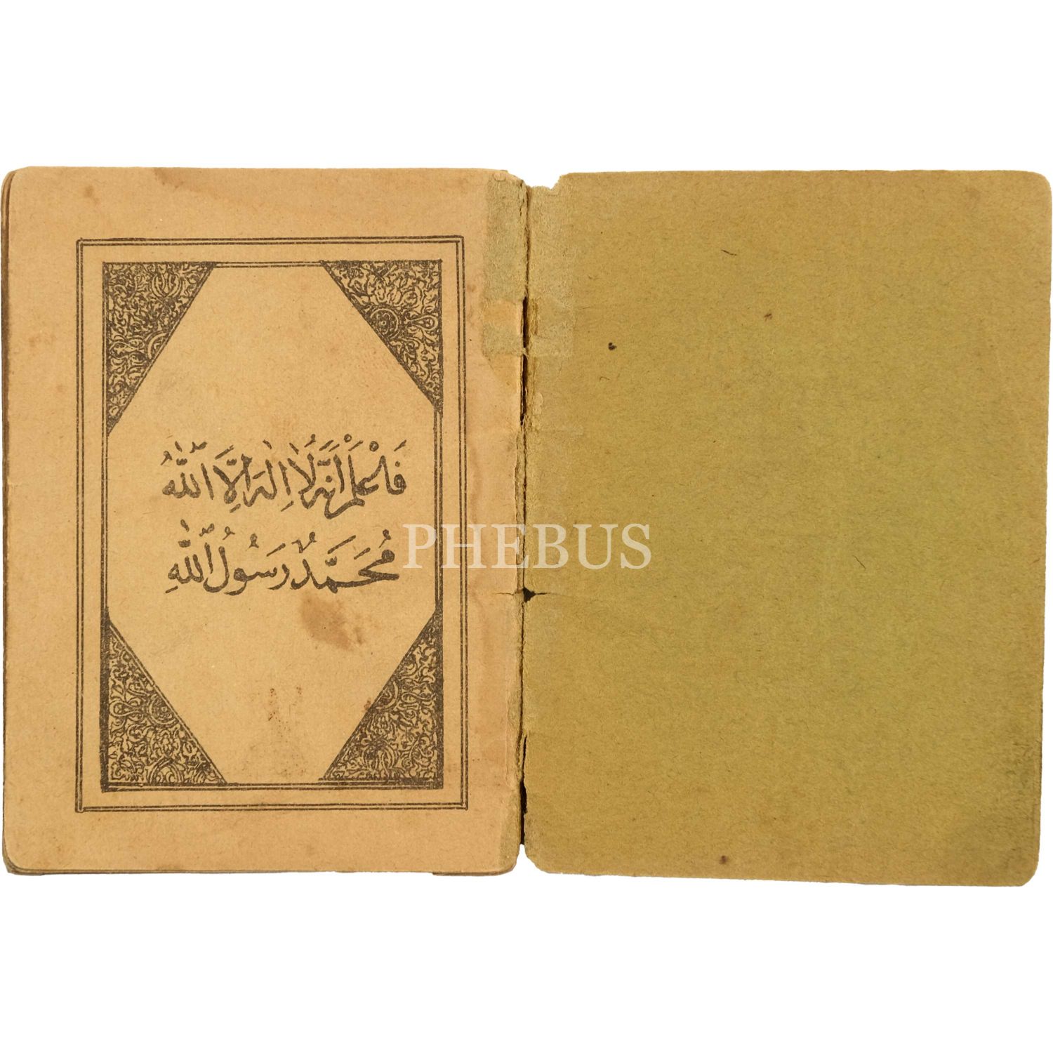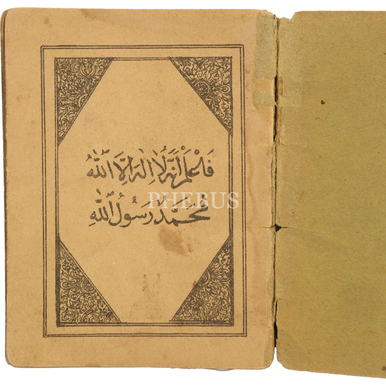 1333/1914 Muharebesi´nde (Çanakkale Savaşı) gazilere dağıtılan ve ve "Gazi arkadaşlarıma" ibaresiyle Enver Paşa´nın baskı imzasını taşıyan Yasin cüzü, 10x7 cm...