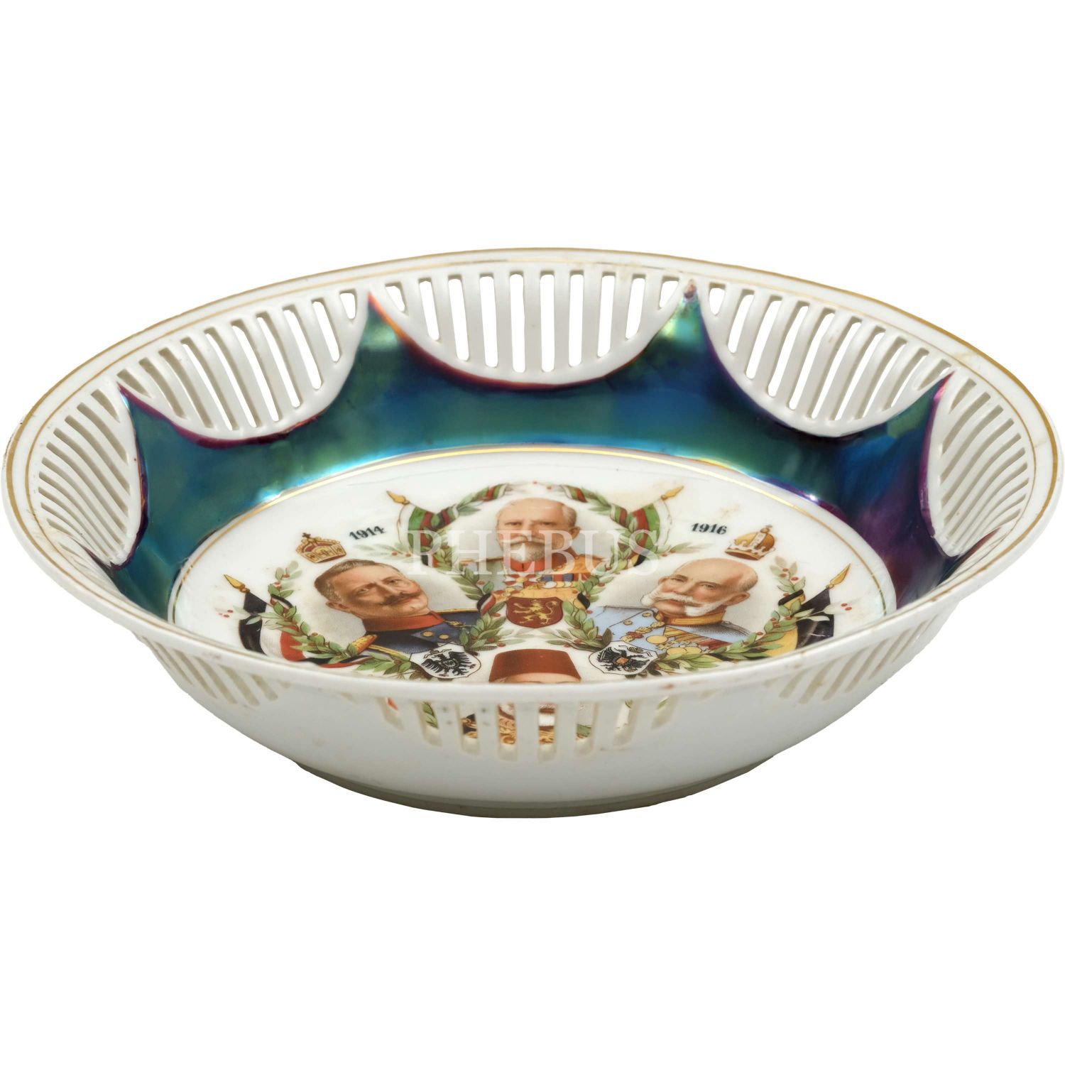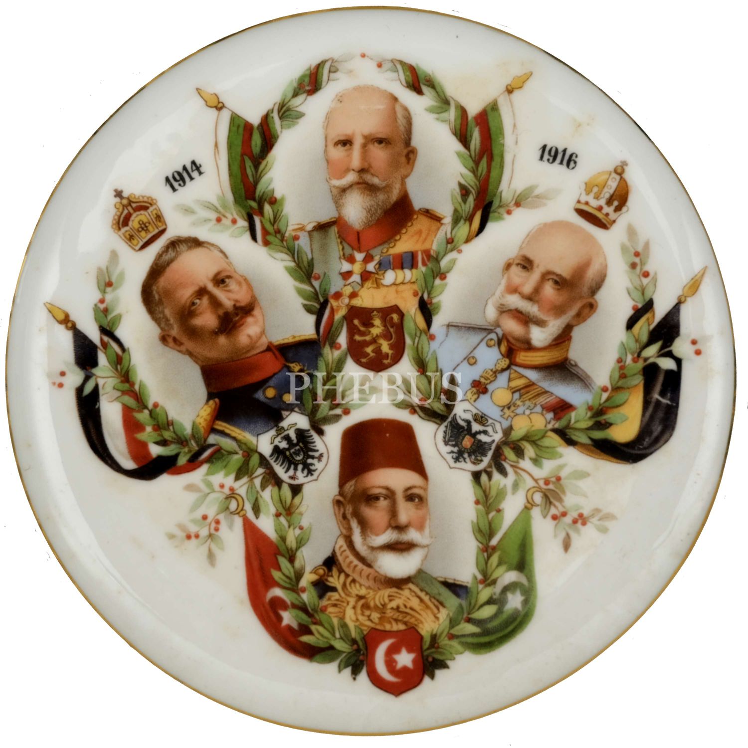 I. Dünya Savaşı´nda İttifak Devletleri´nin liderlerinin portre fotoğraflarına yer verilen, ittifak temalı tabak, 21x6 cm...