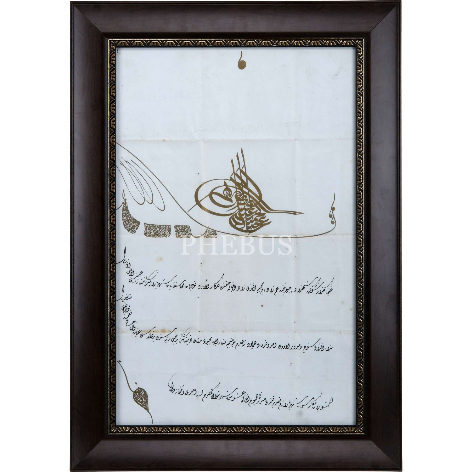 Sultan 2. Abdülhamid tarafından son halife Abdülmecid Efendi´ye verilen 1. rütbe Mecîdî nişanının baskı tuğralı beratı, 1301 tarihli, çerçeve içi ölçü: 35x56 cm...