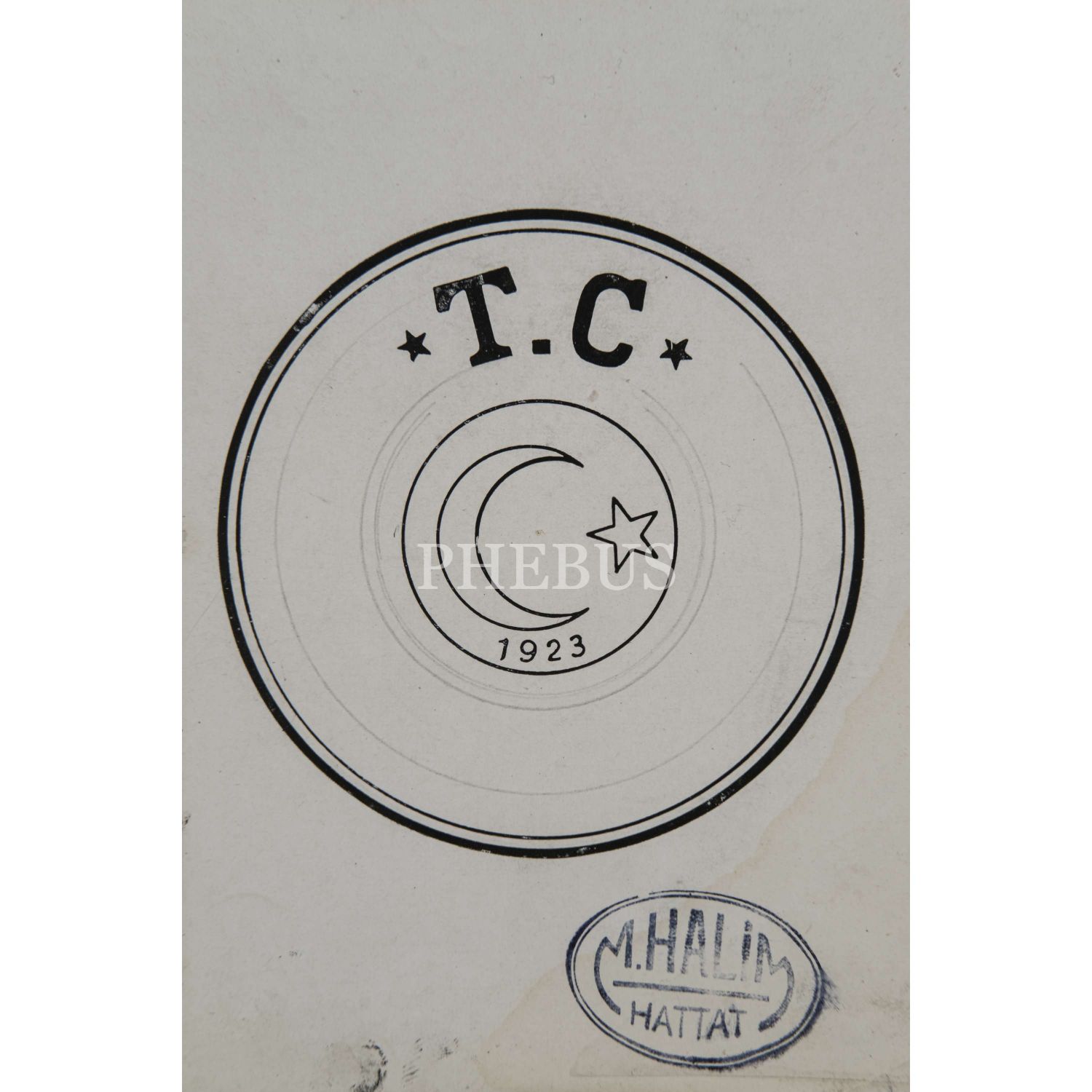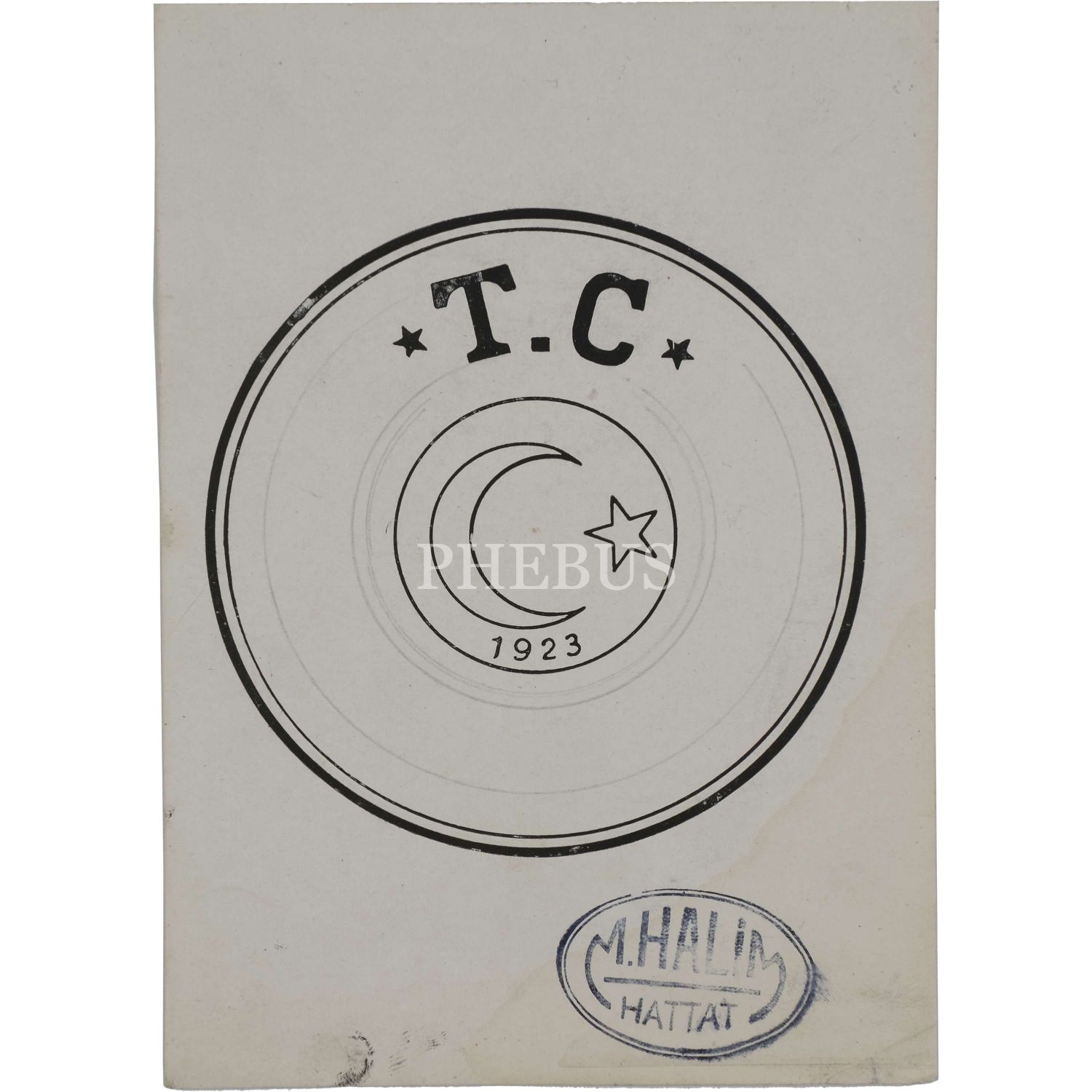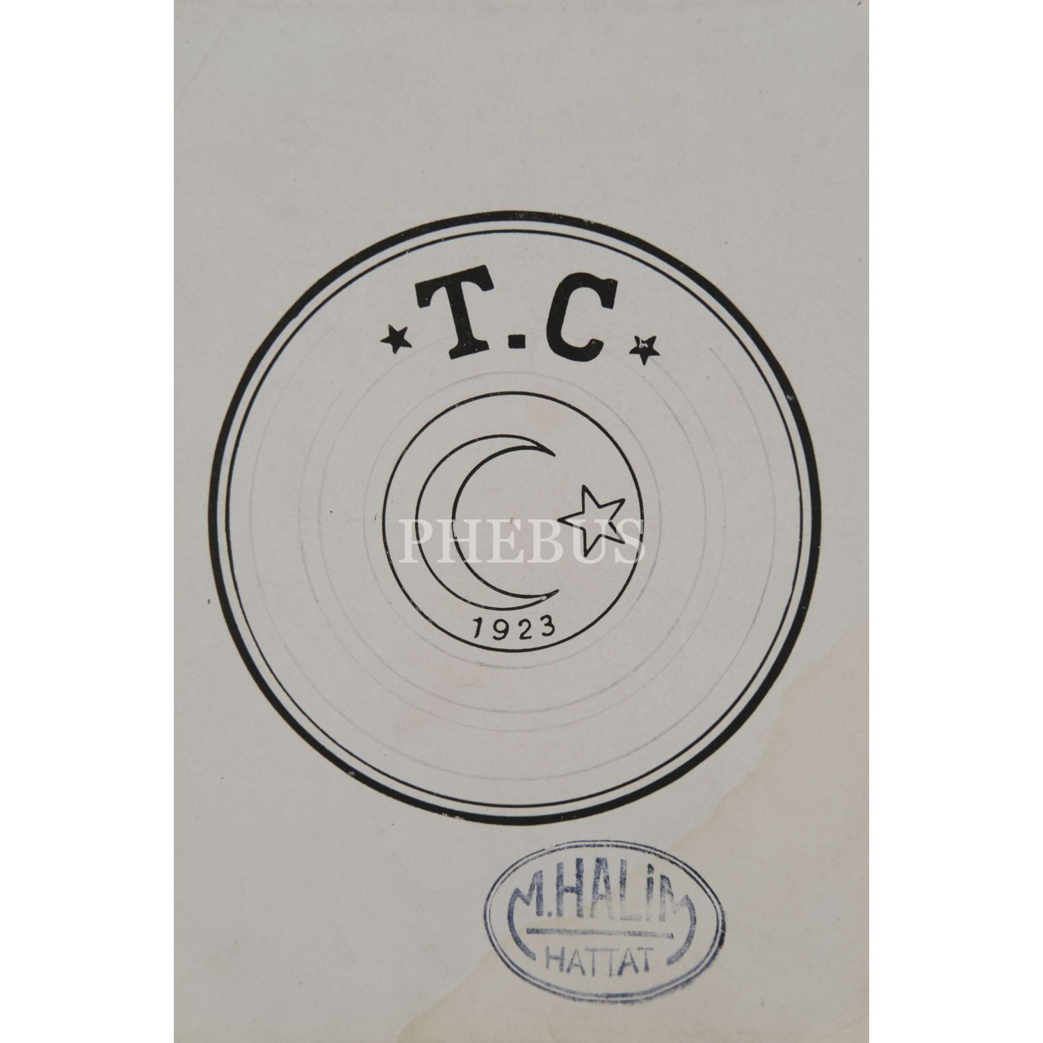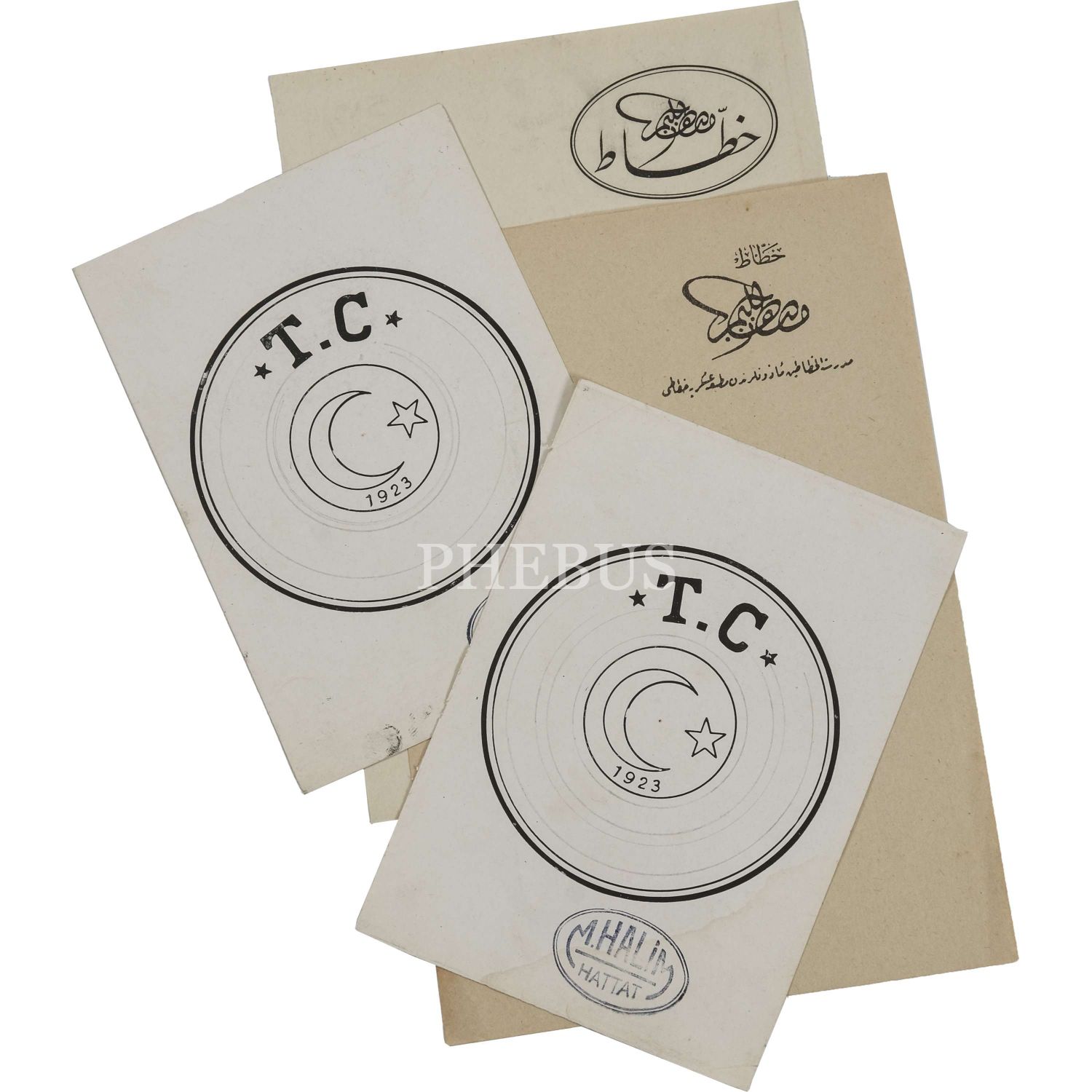 Hattat Halim Özyazıcı´nın antetli 2 adet kağıdı ve mührünü taşıyan, resmî bir kurum için tasarladığı T.C yazılı 2 adet mühür taslağı, kağıt ölçüleri: 15x21&14x20&11x16 cm...