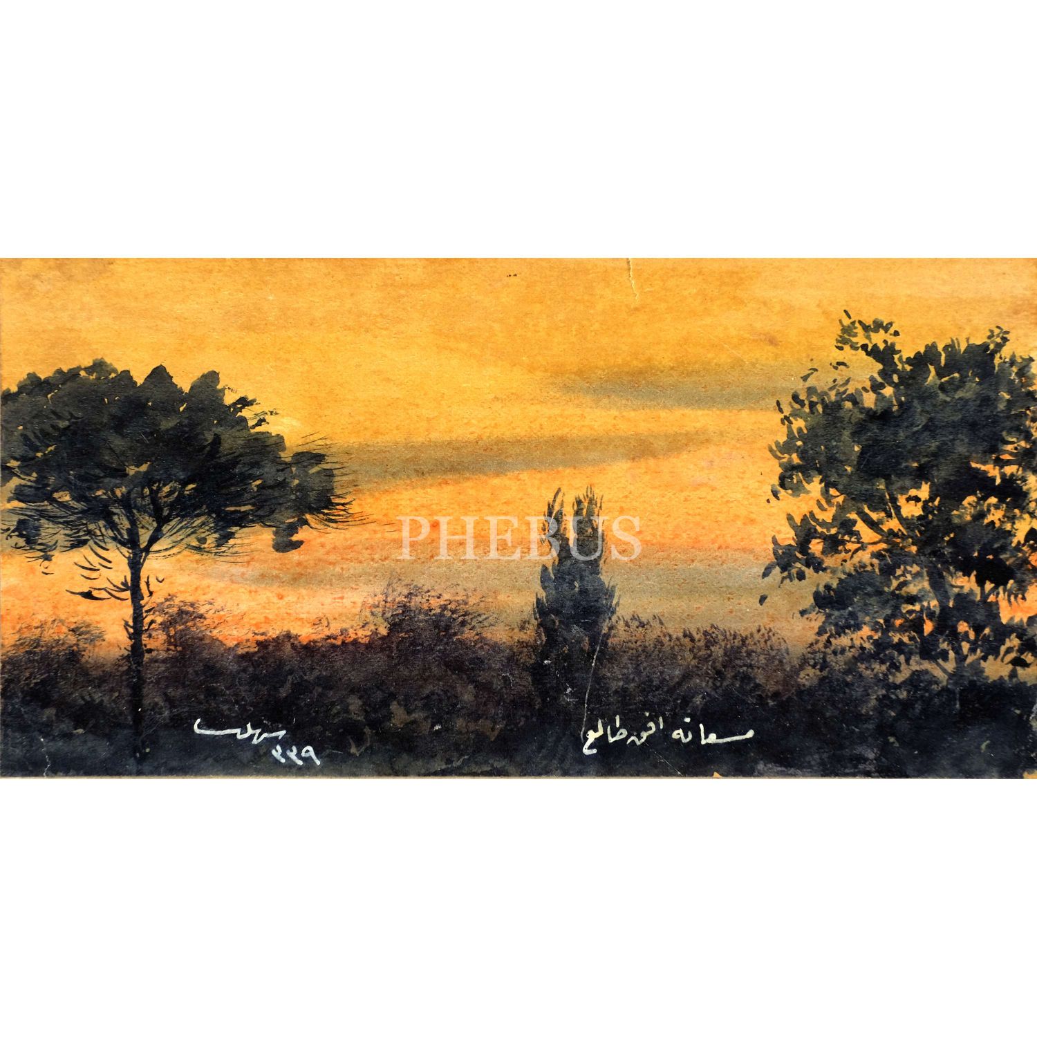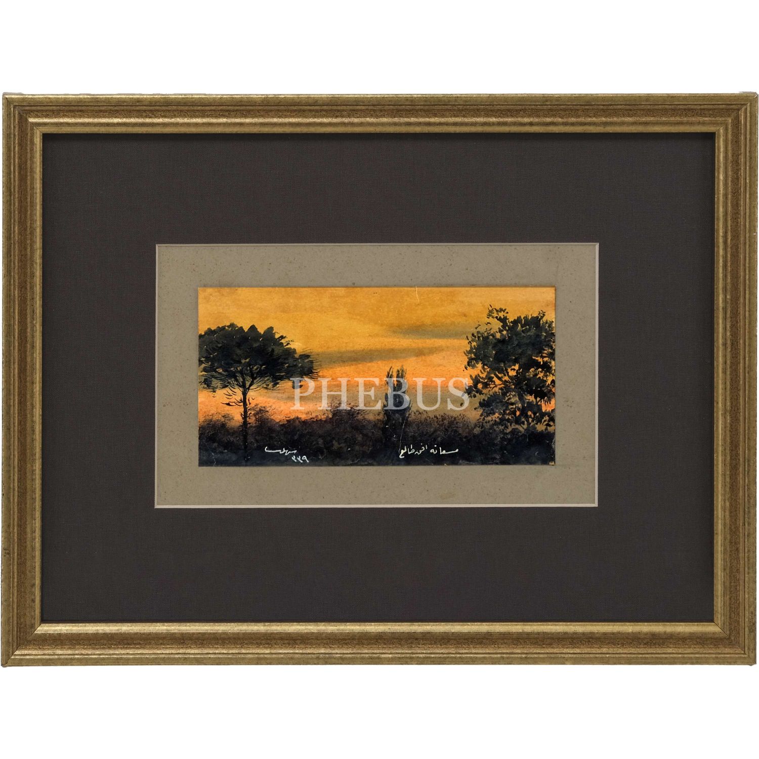 Osmanlıca "Süheyl" imzalı karton üzerine yapılmış yağlı boya resim. alt tarafta osmanlıca olarak "Mes´ane ufk-u tâli´" yazmaktadır. kağıt üzerine yapıştırılmıştır.