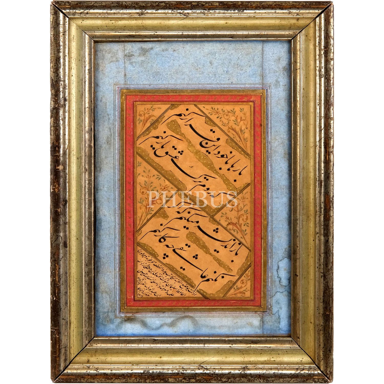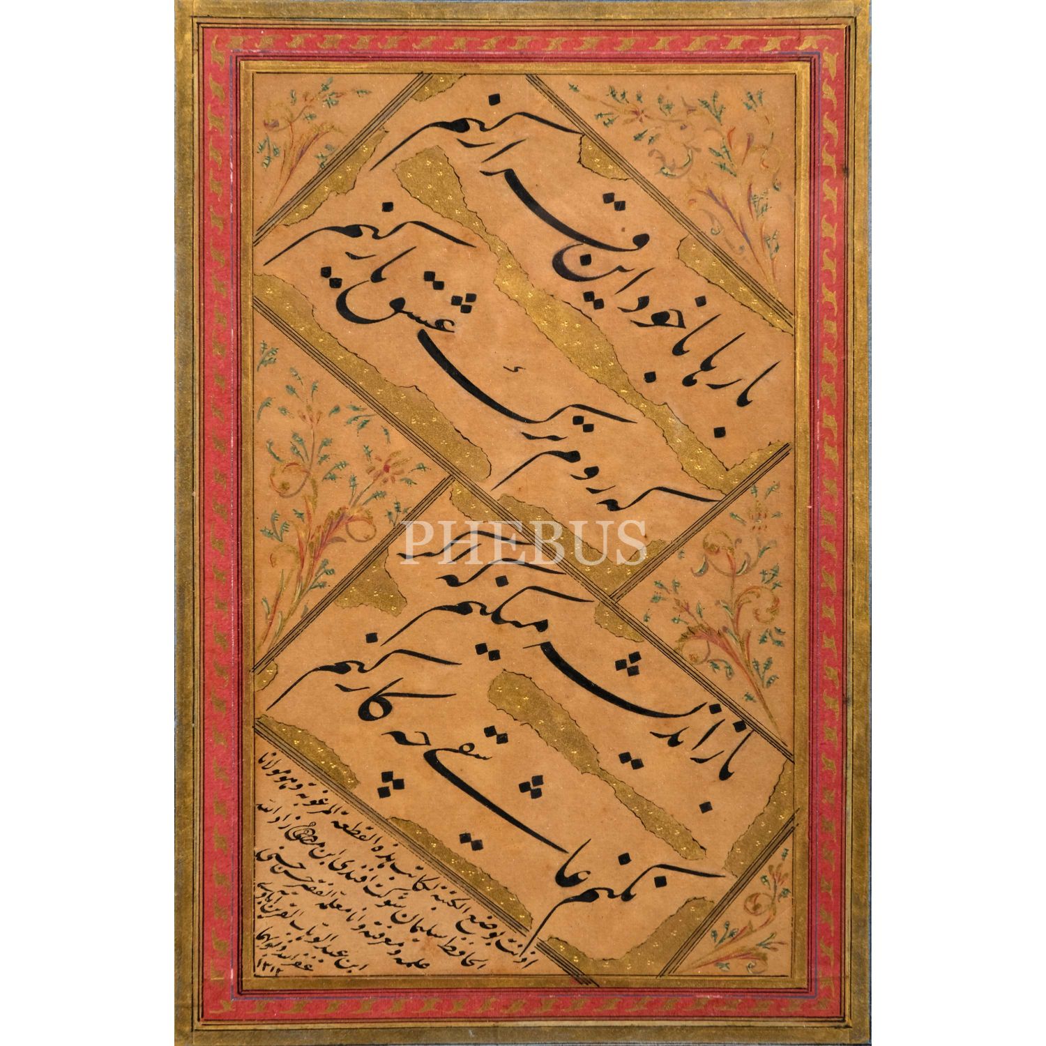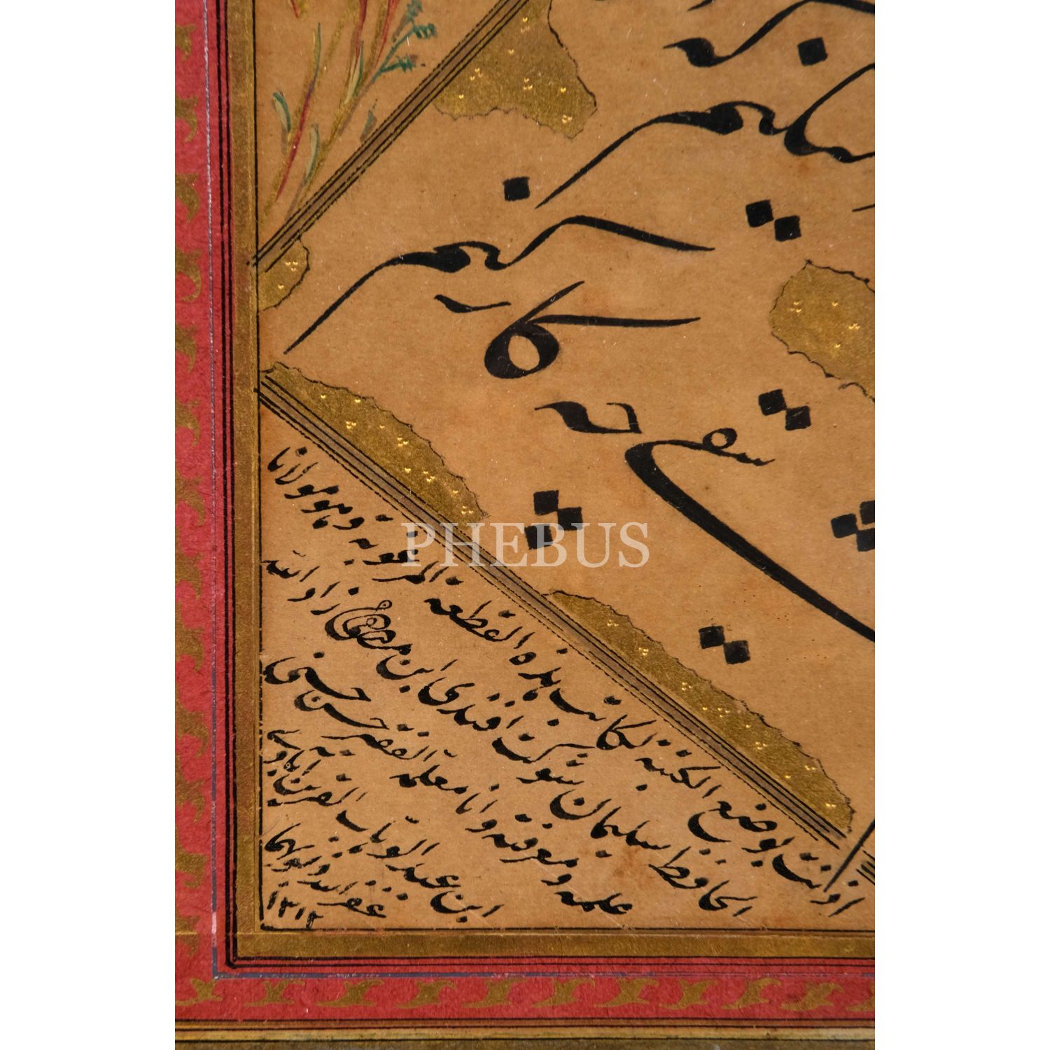 Süleyman Şevket Efendi´nin Talik icâzet kıtası, 1312 tarihli, dönem tezhipli, yazı ölçü: 11x20 cm, çerçeve içi ölçü: 19x30 cm...