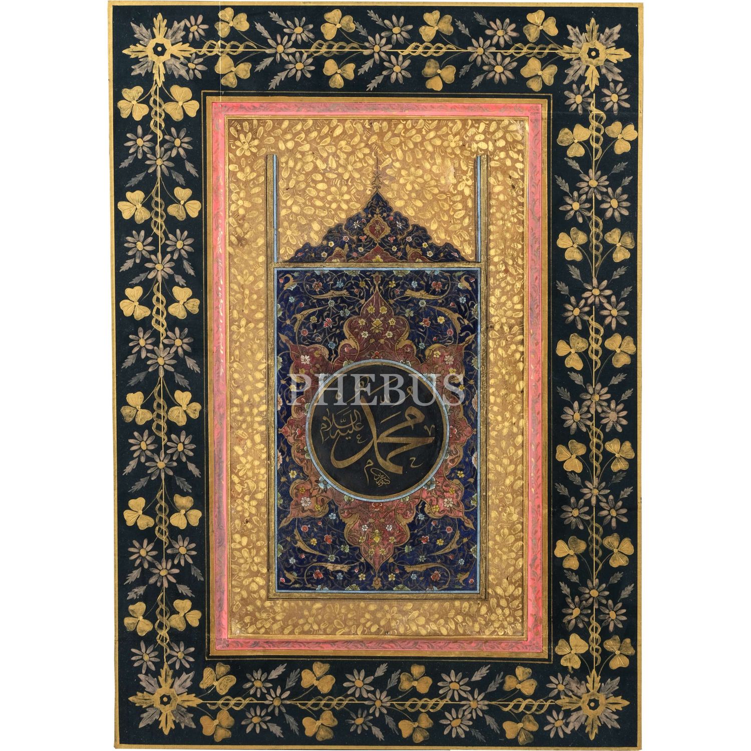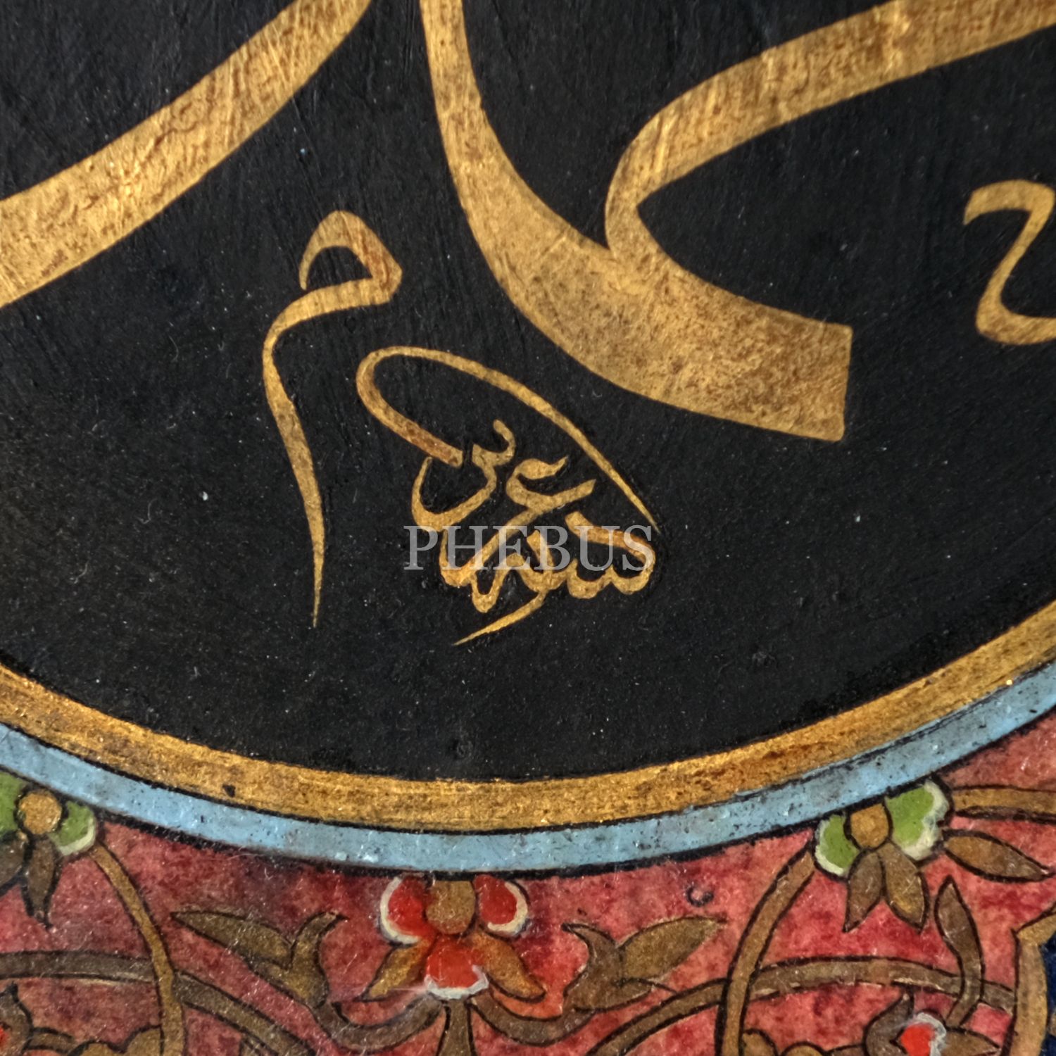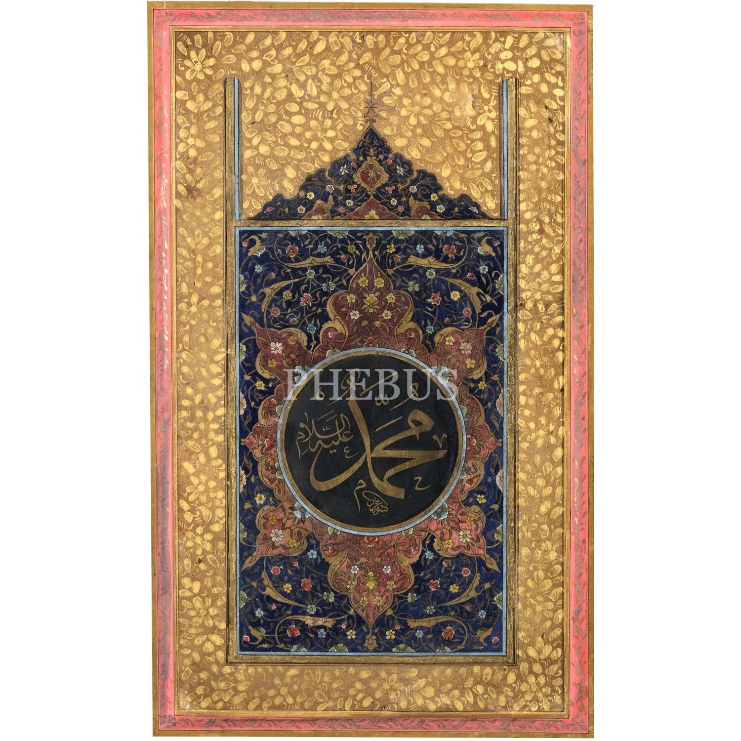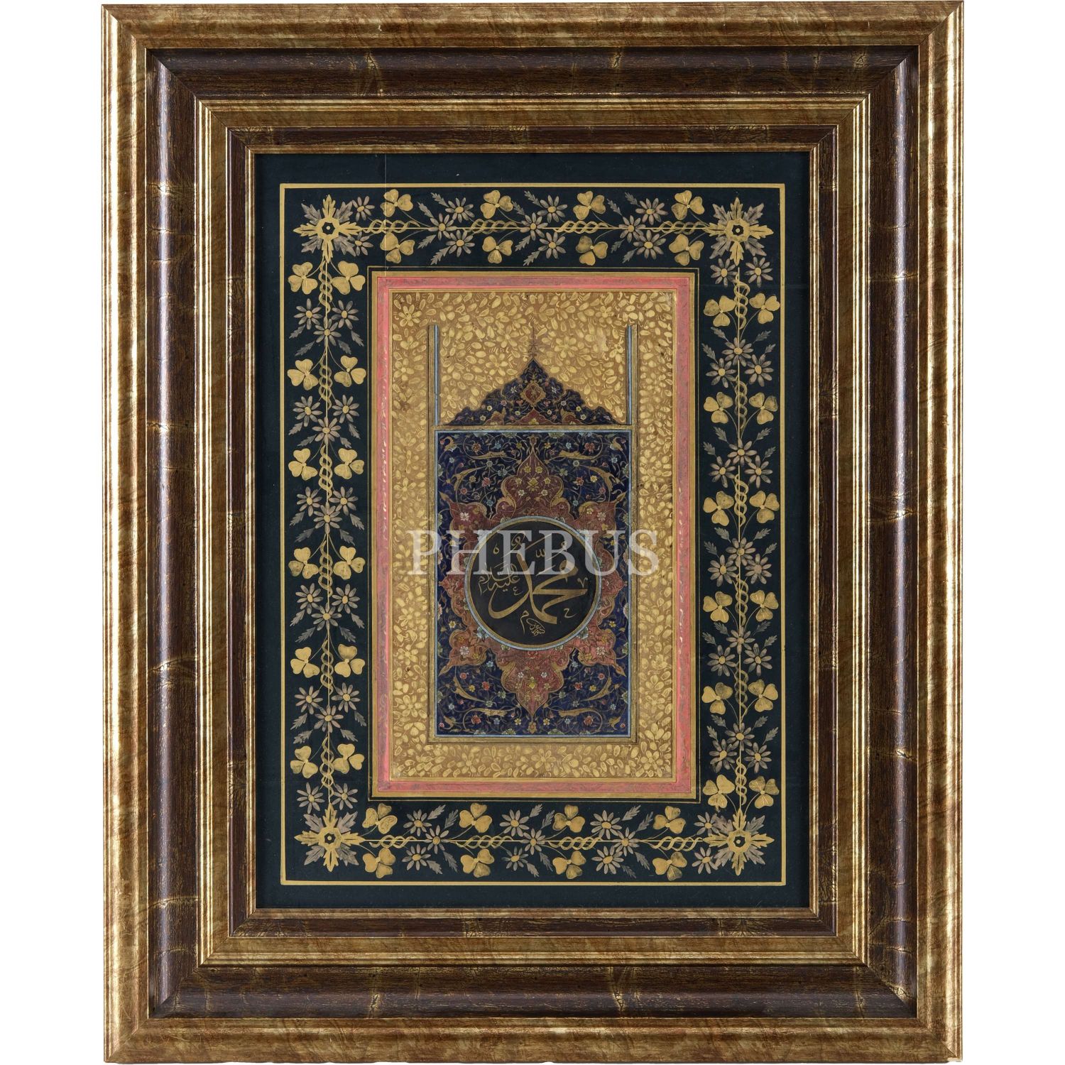 Aziz (Rufaî) ketebeli zerendut İsm-i Nebi, Serlevha tezhipli, yazı çapı 8 cm, çerçeve içi ölçü: 34x48 cm...