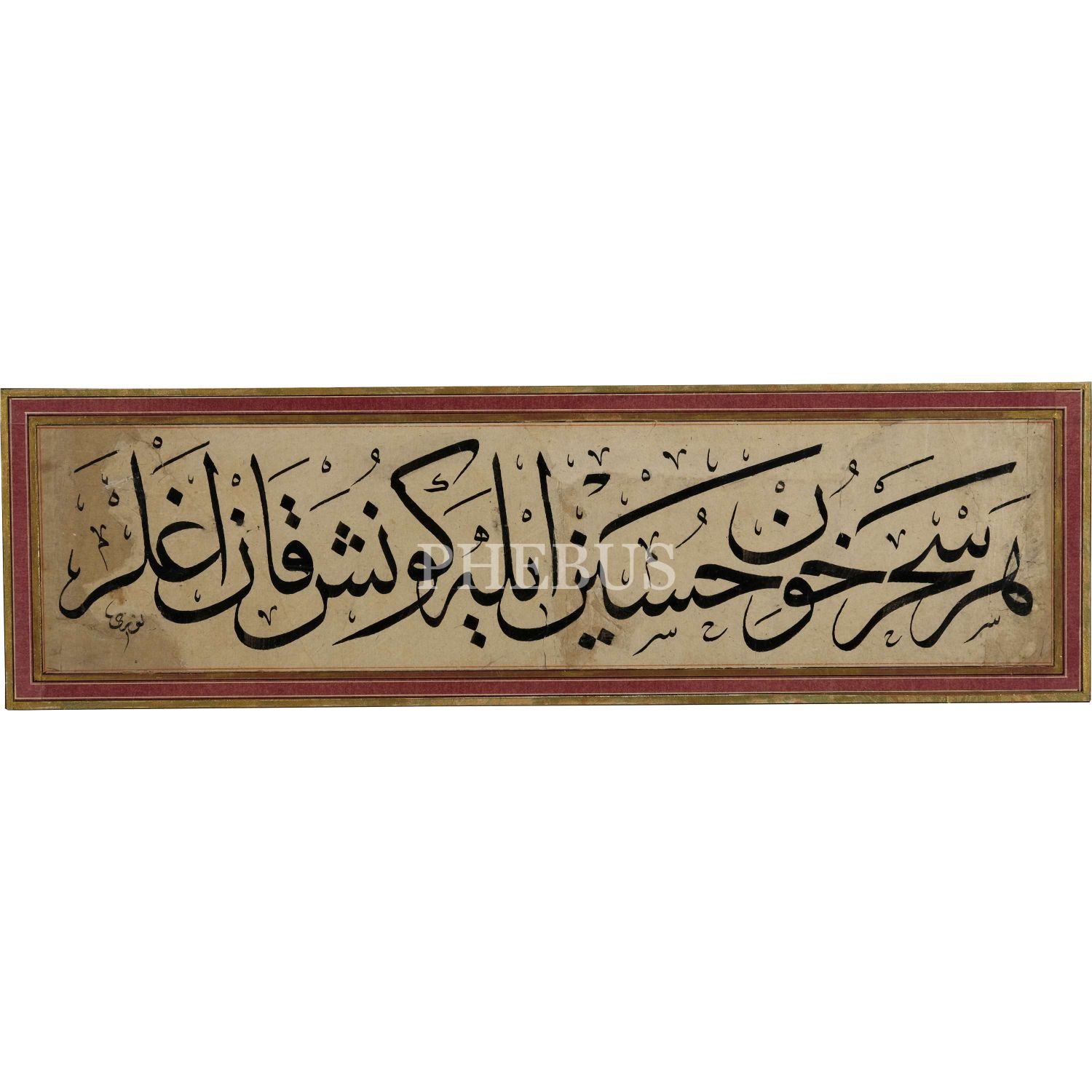 Okunuşu: "Her seher hûn-i Hüseyn ile güneş kan ağlar"