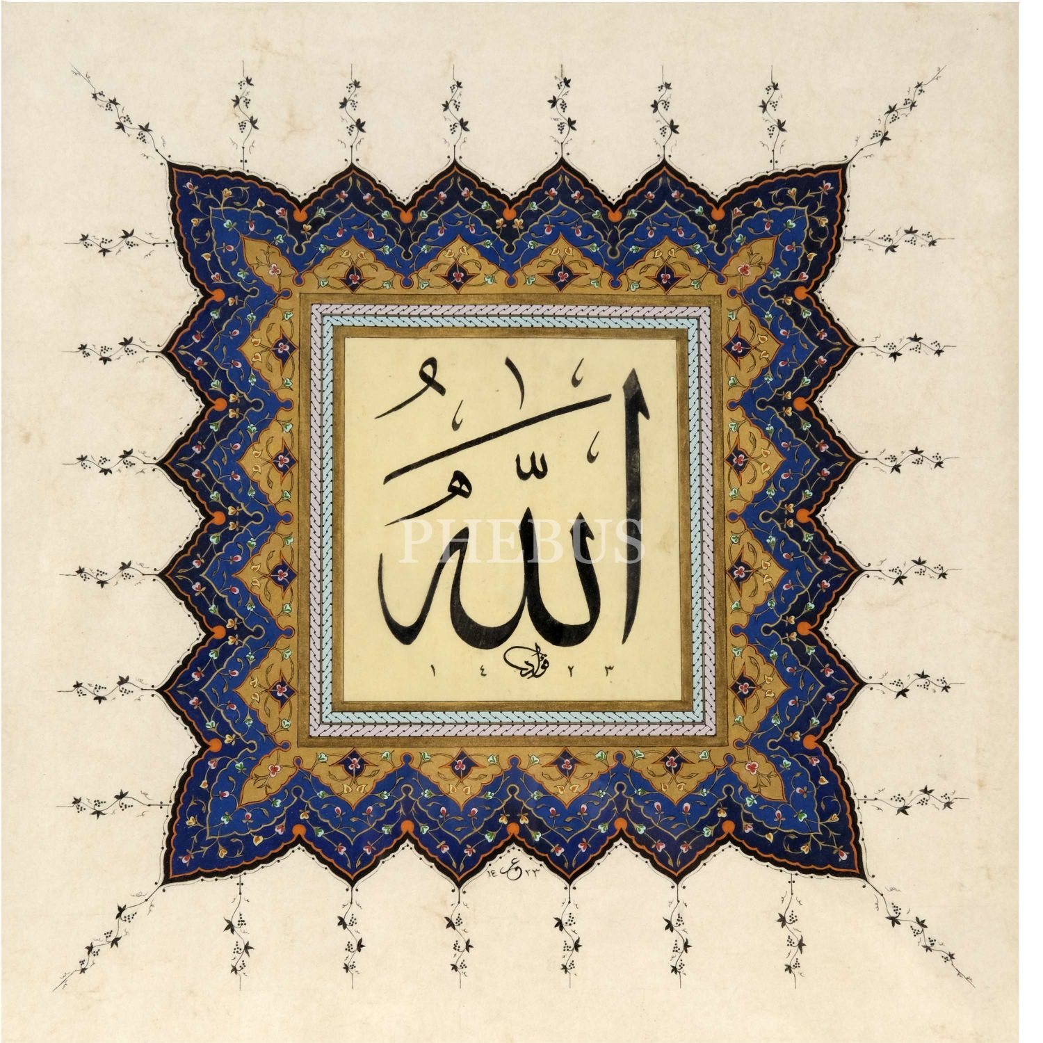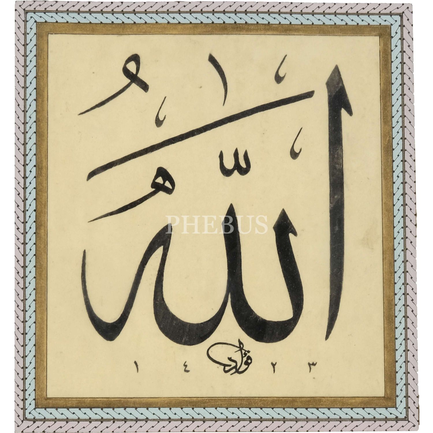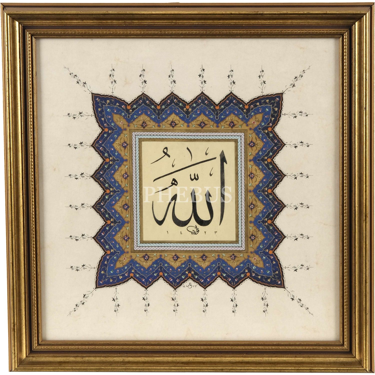 Fuad (Başar) ketebeli lafza-i celâl, 1423 tarihli, tezhibi Ömer imzalı ve 1423 tarihli, yazı ölçü: 8x10 cm, çerçeve içi ölçü: 29x29 cm...