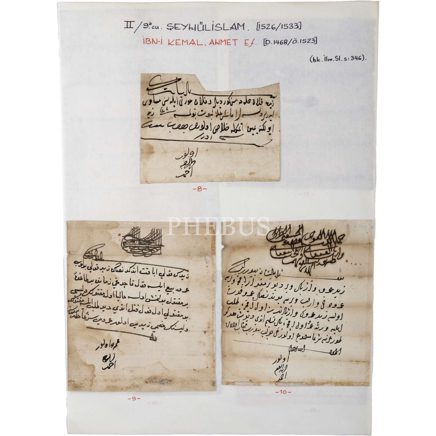 Şeyhülislam İbni Kemal Ahmed Efendi´nin 7 adet fetvası, 16. yüzyılın ilk çeyreği, en büyük kağıt: 10x15 cm, en küçük kağıt: 9x7 cm...
