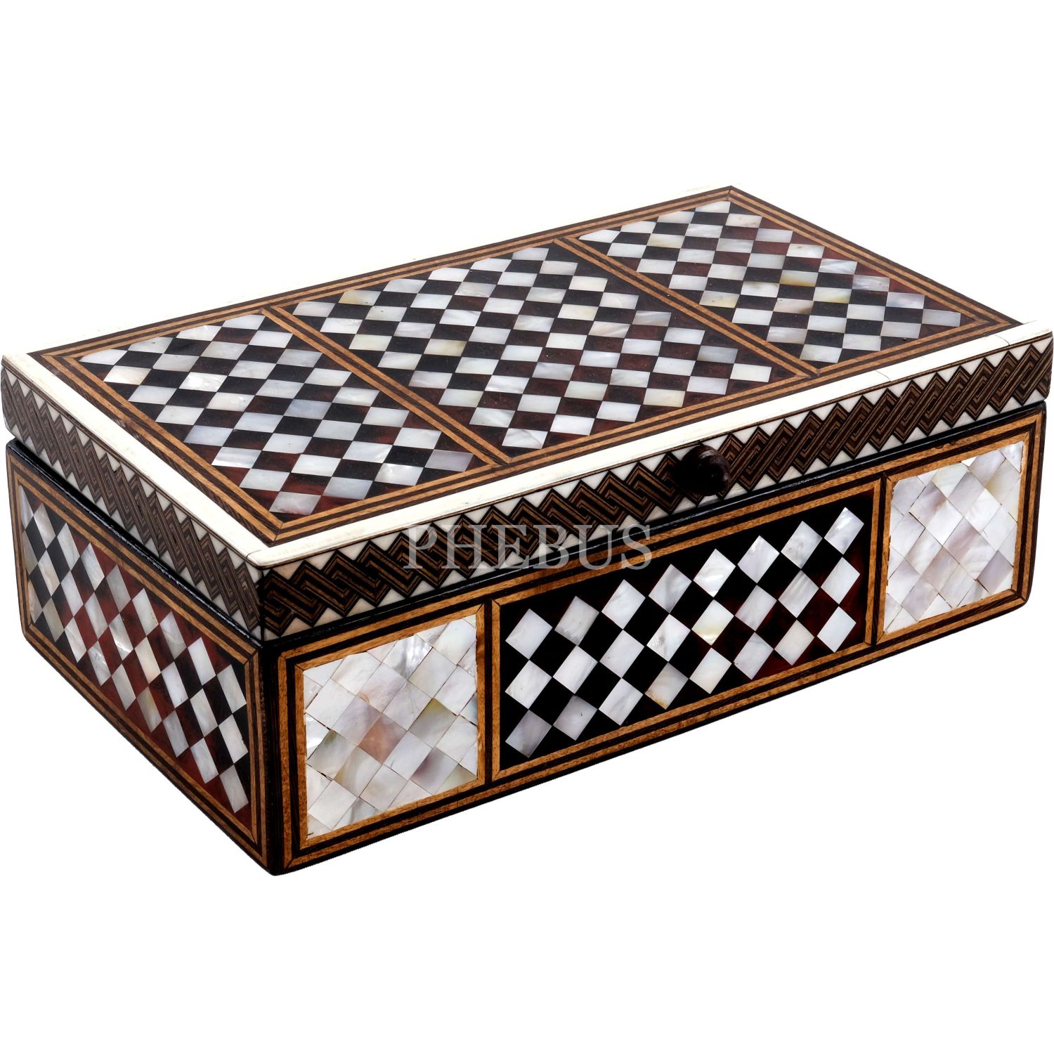 Sedef ve bağa kakma ahşap kutu, 35x20x12 cm...