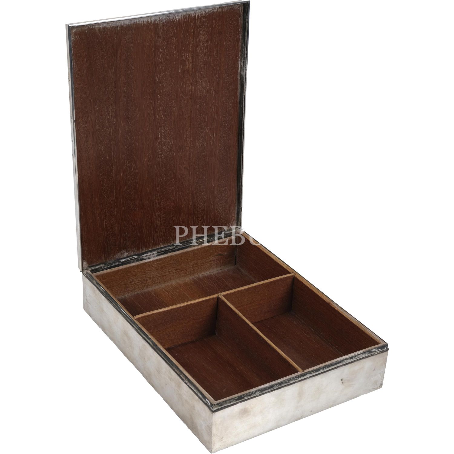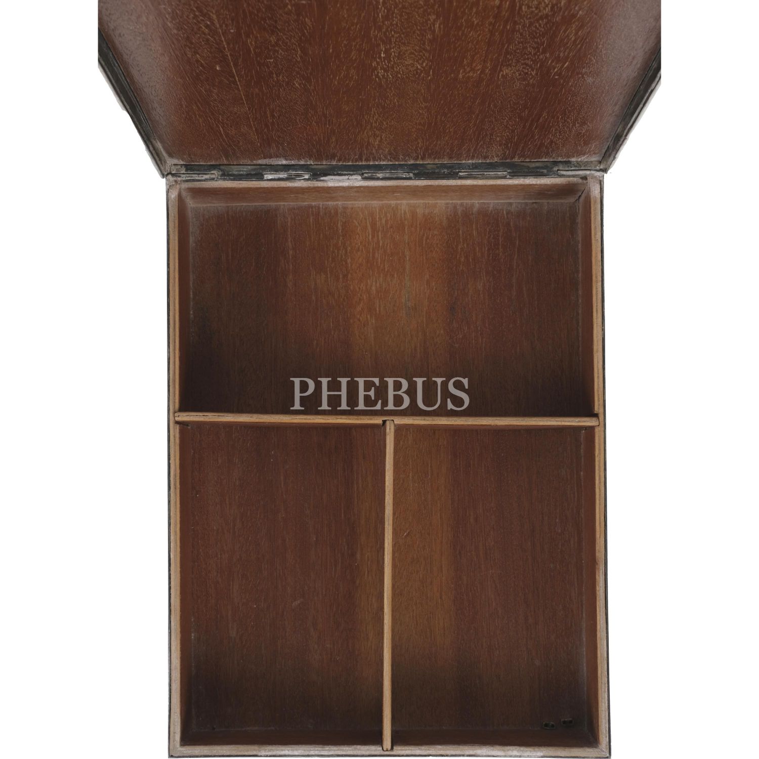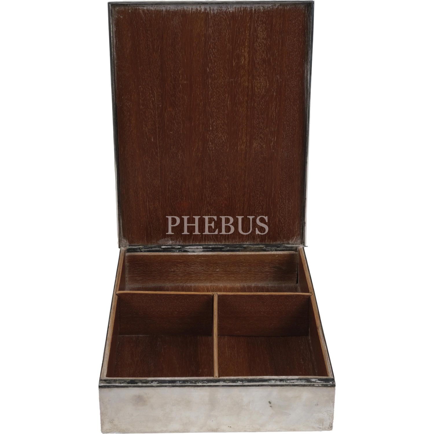 Kutunun üzerine kalem işçiliğiyle floral desenler ve Grek harfleriyle yazılar yazılmıştır. Kutunun dışı gümüş, içi ahşap kaplamadır.