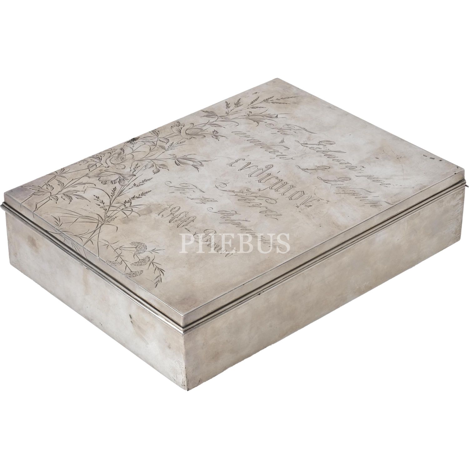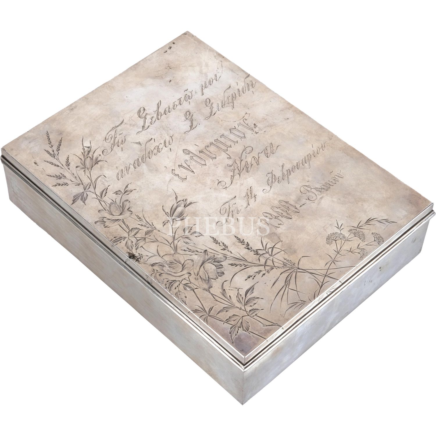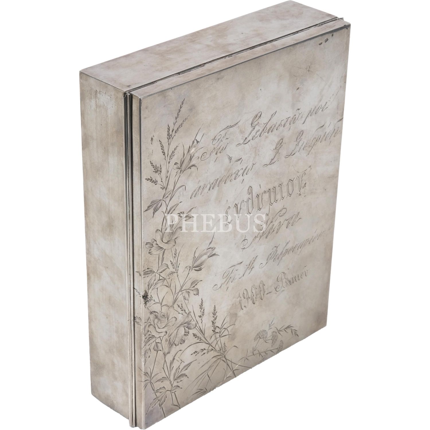 1900 yılında imal edilmiş gümüş (Rus 84 damgalı) puro kutusu, 19x24x6 cm...