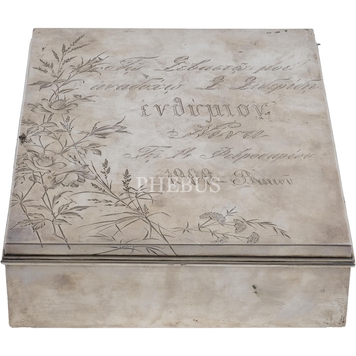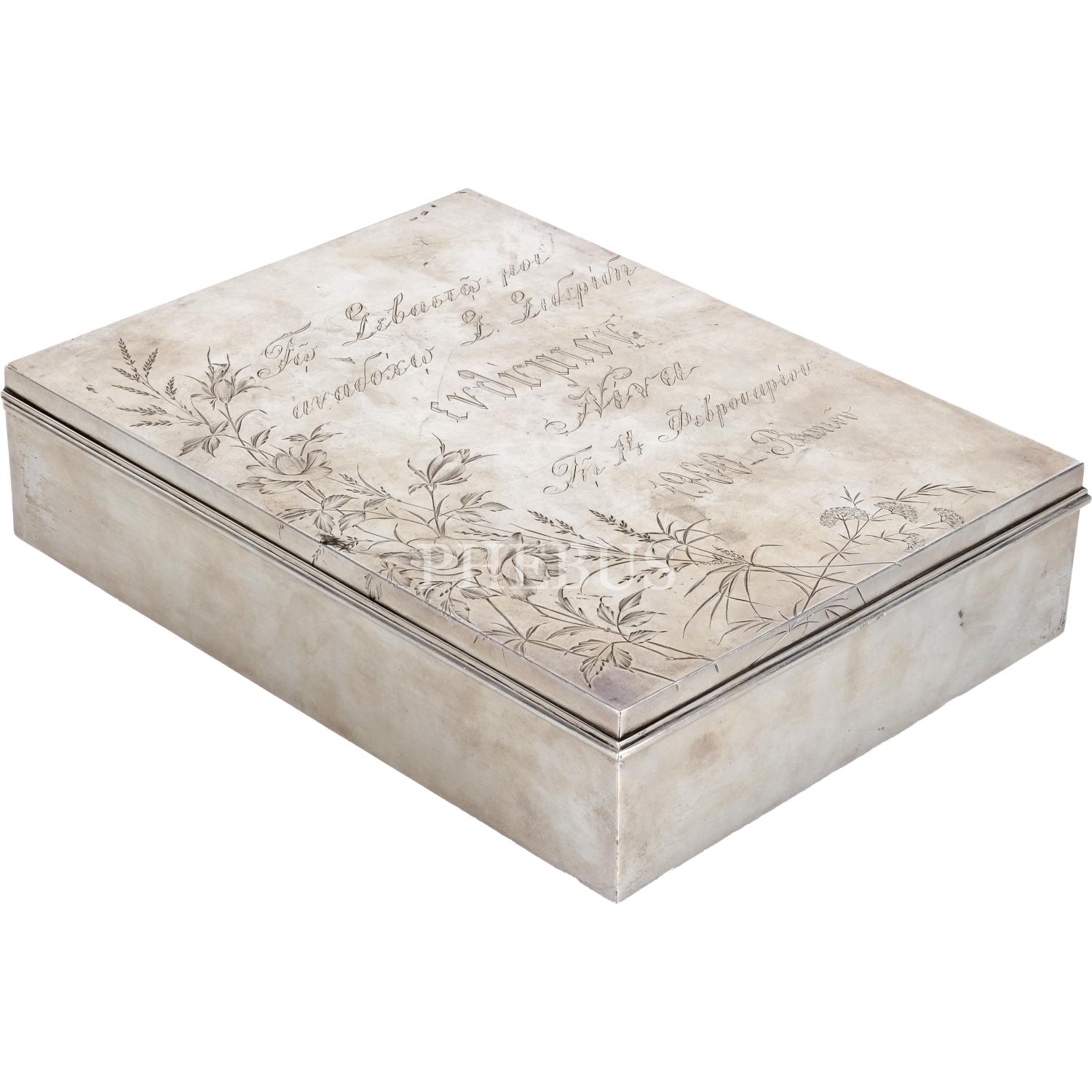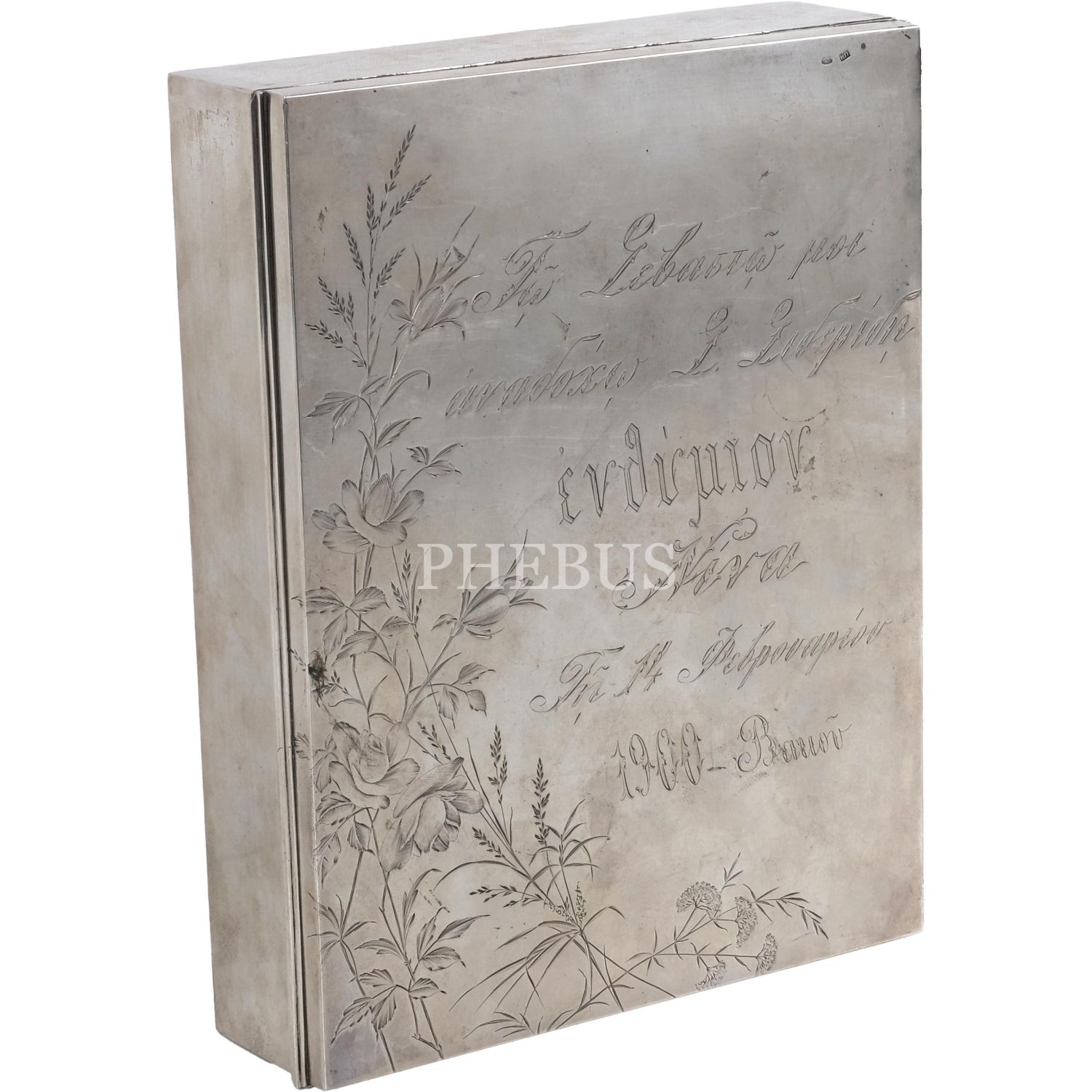 1900 yılında imal edilmiş gümüş (Rus 84 damgalı) puro kutusu, 19x24x6 cm...