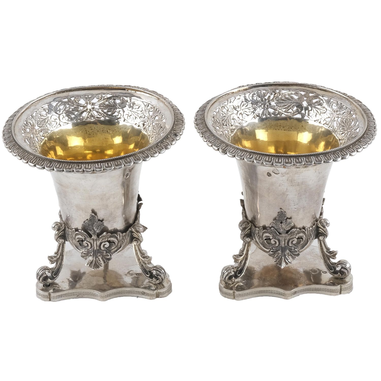 Osmanlı döneminden 2 adet gümüş şekerlik ve kaideleri, her bir parçası "sah" ve tuğra damgalı, 12x12x9 cm...
