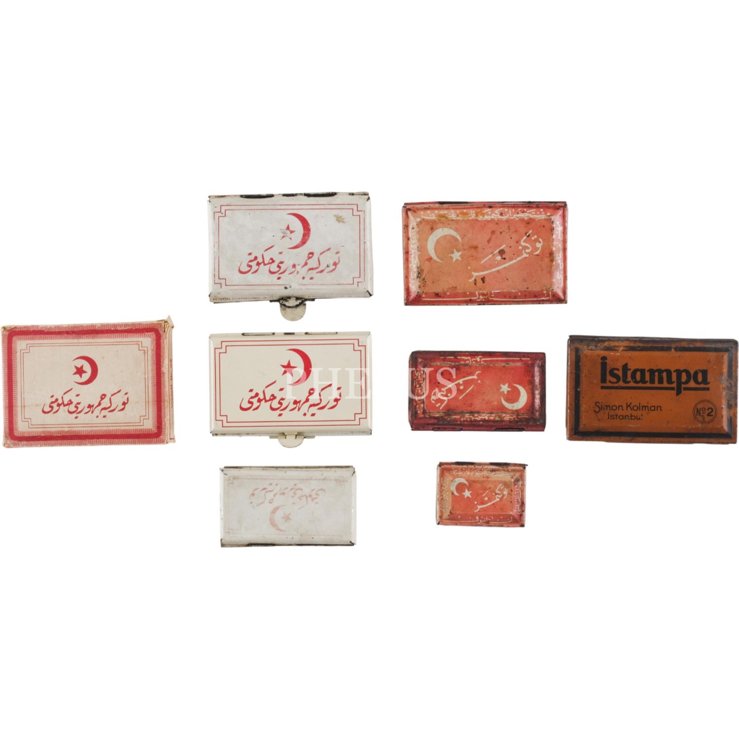 Osmanlıca "Türkiye Cumhuriyeti Hükümeti" yazılı 3 adet stampa ve Müstehzerat-ı Kimyeviyye Fabrikası tarafından üretilen 3 adet stampa ve Simon Kolman firması tarafından üretilen 1 adet stampa....