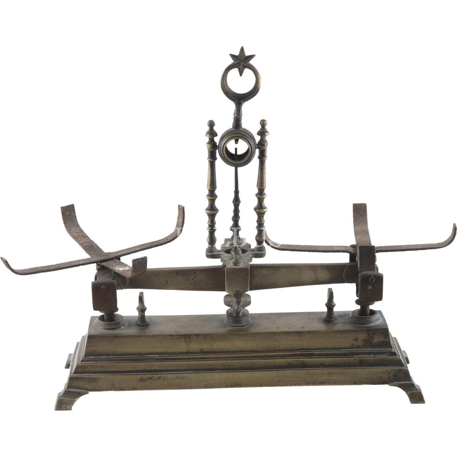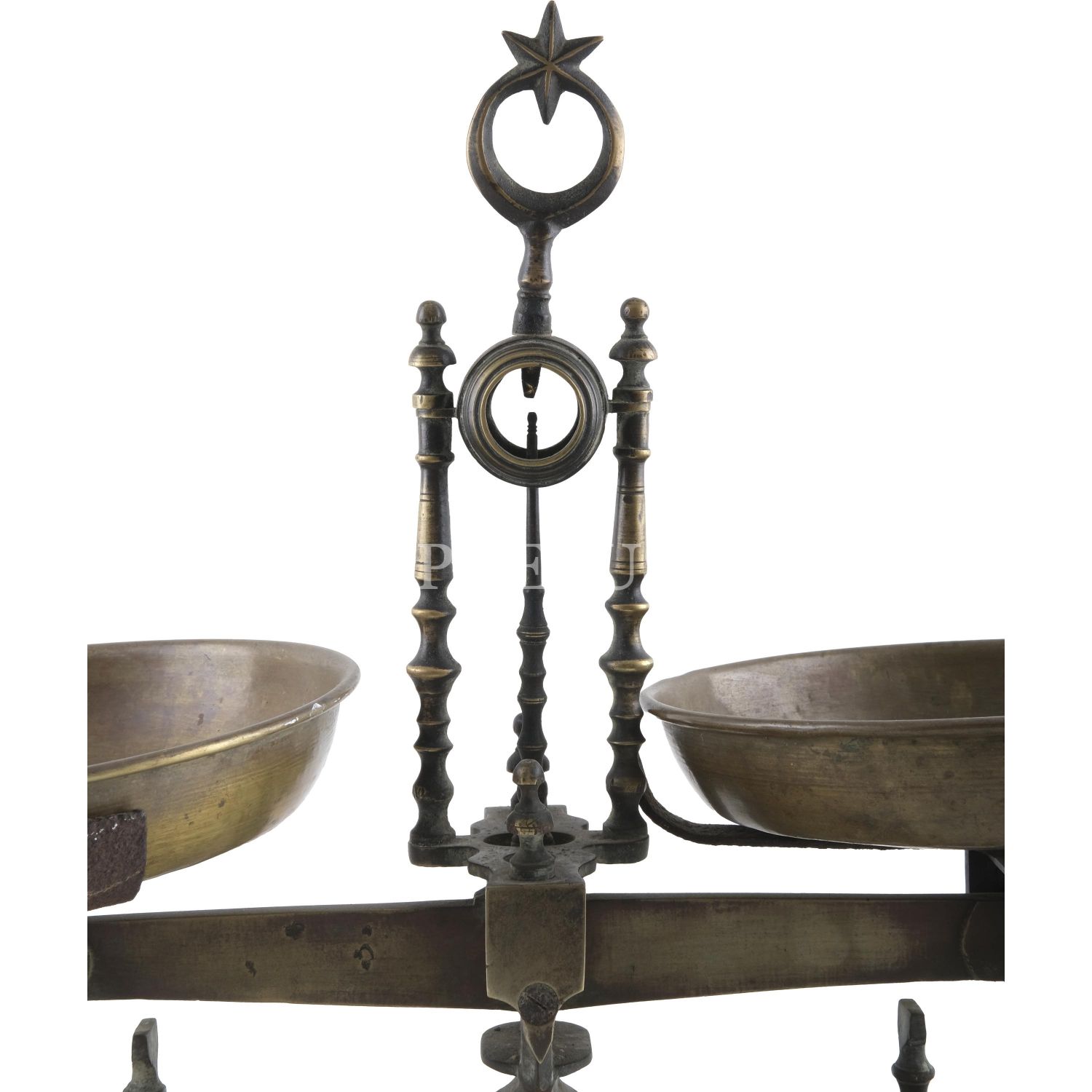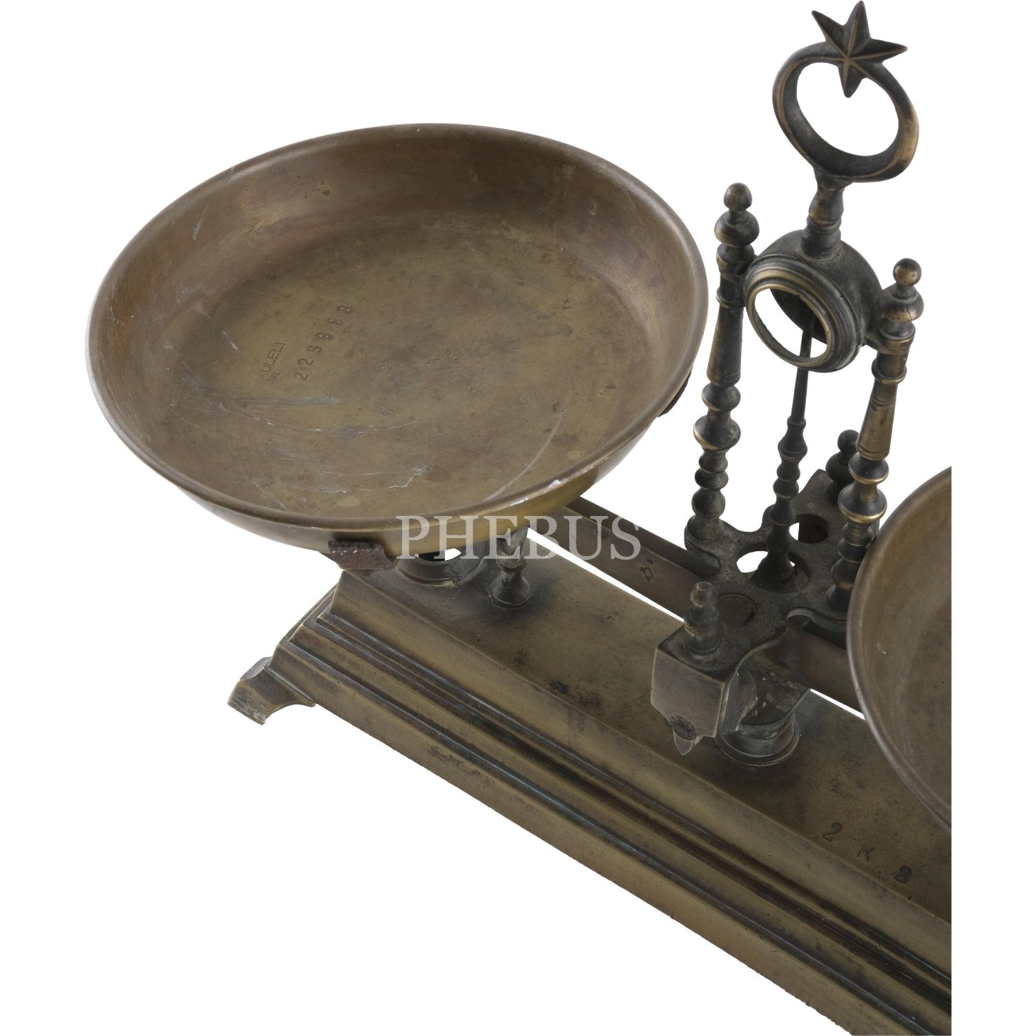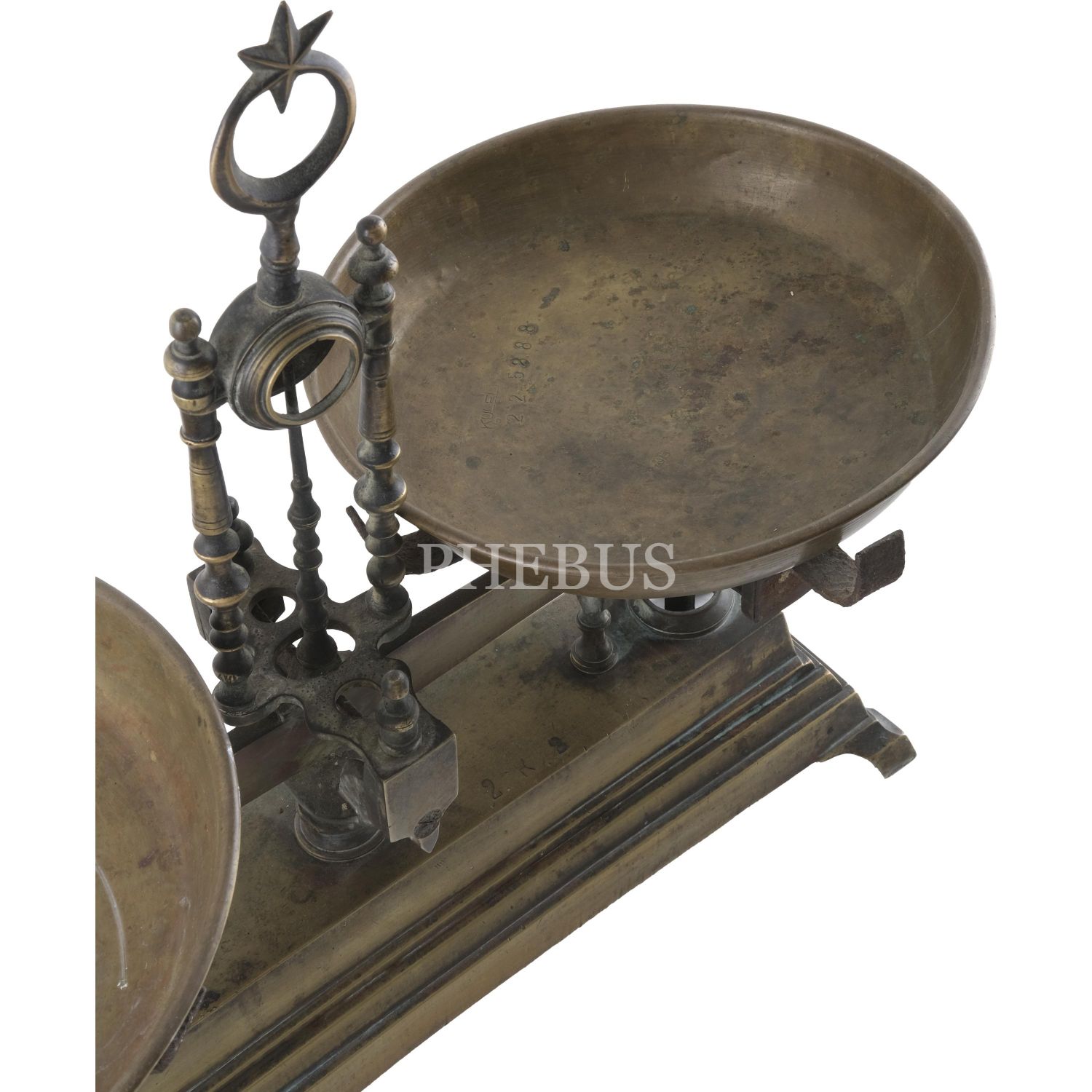 Küfelerinde "Kuleli" yazılı pirinç terazi, 41x40x17 cm...