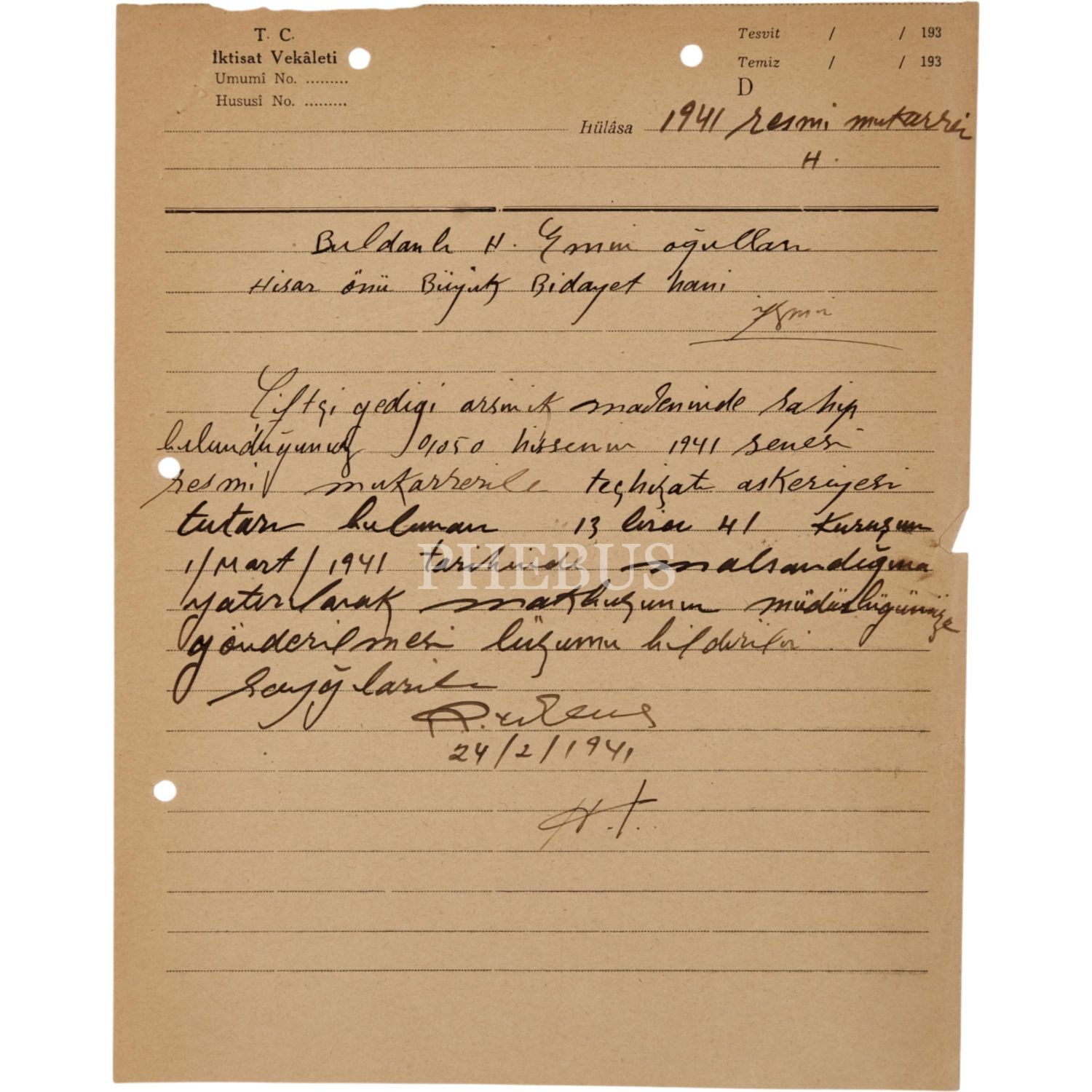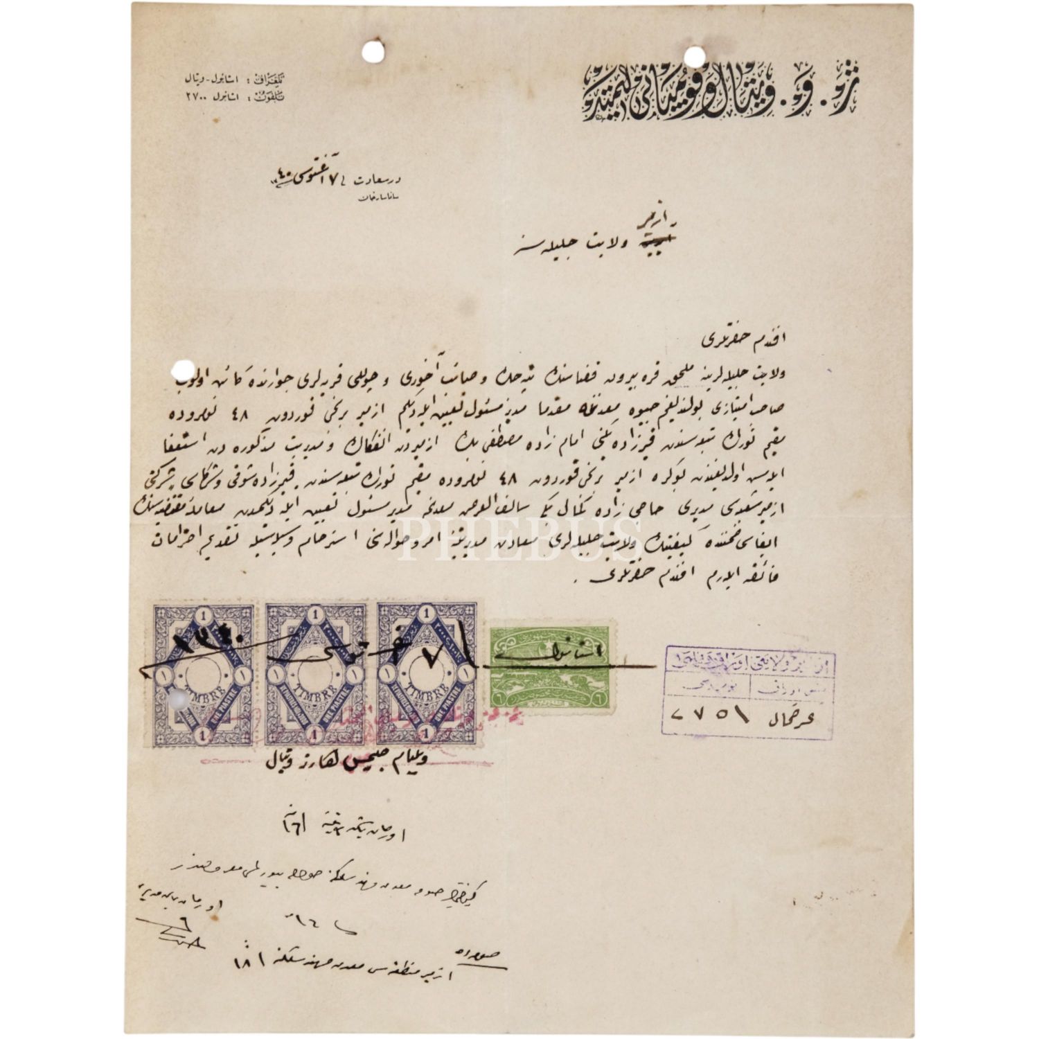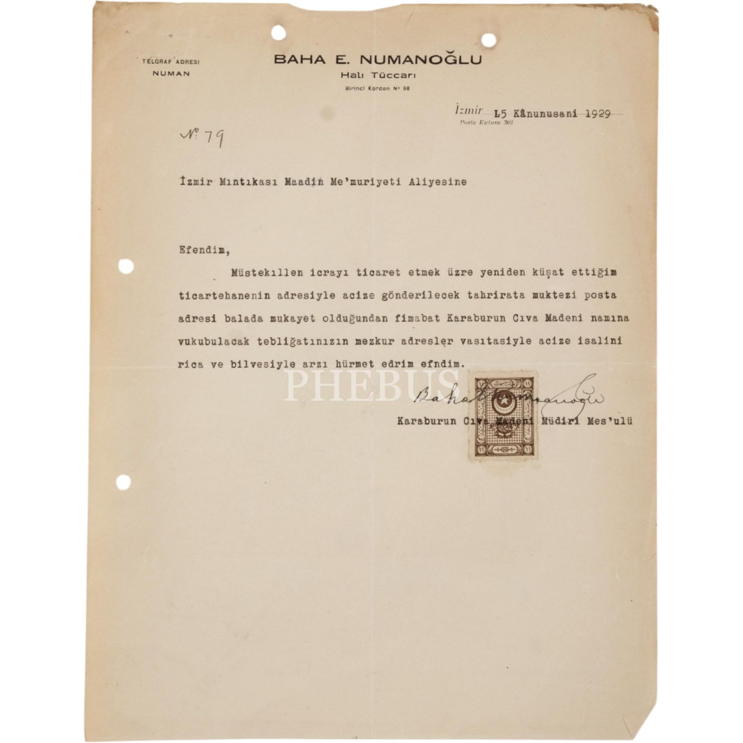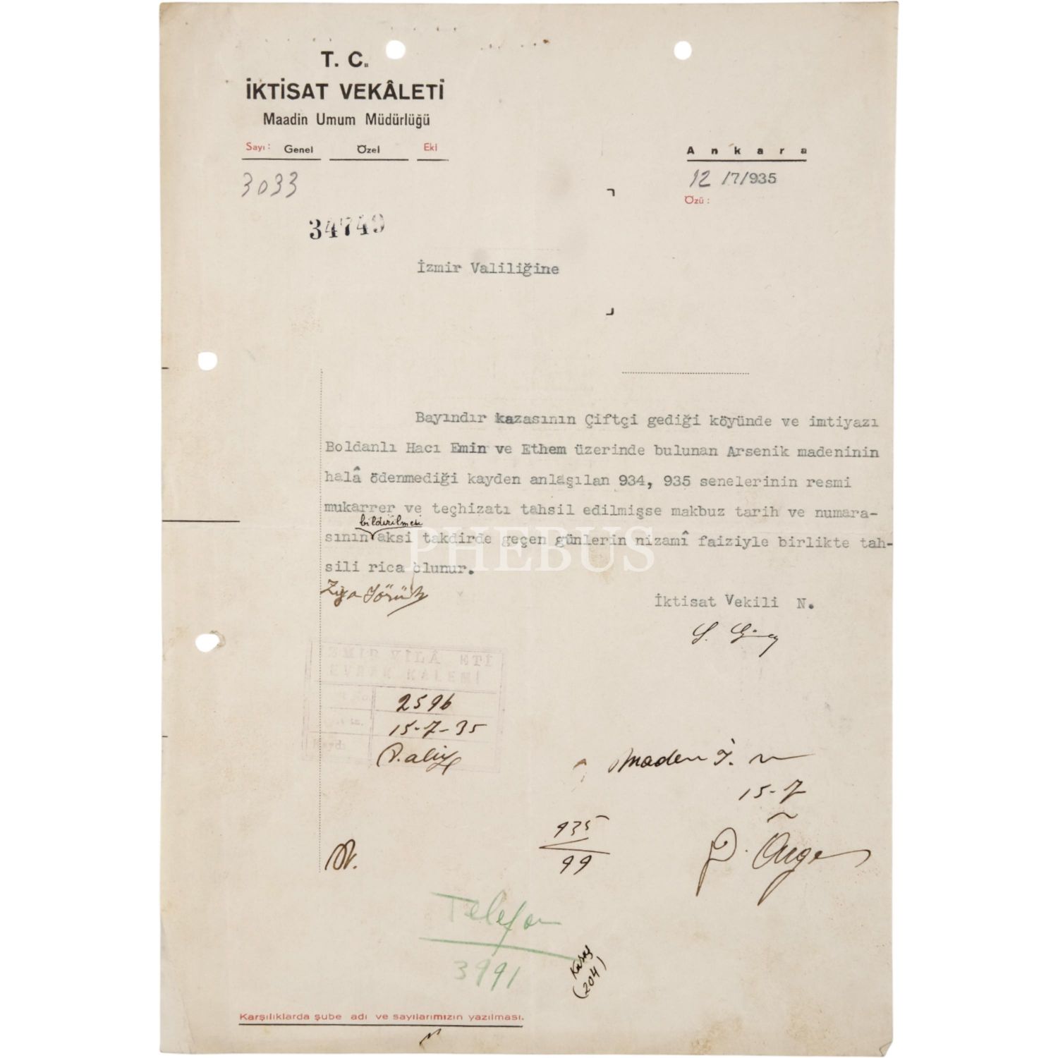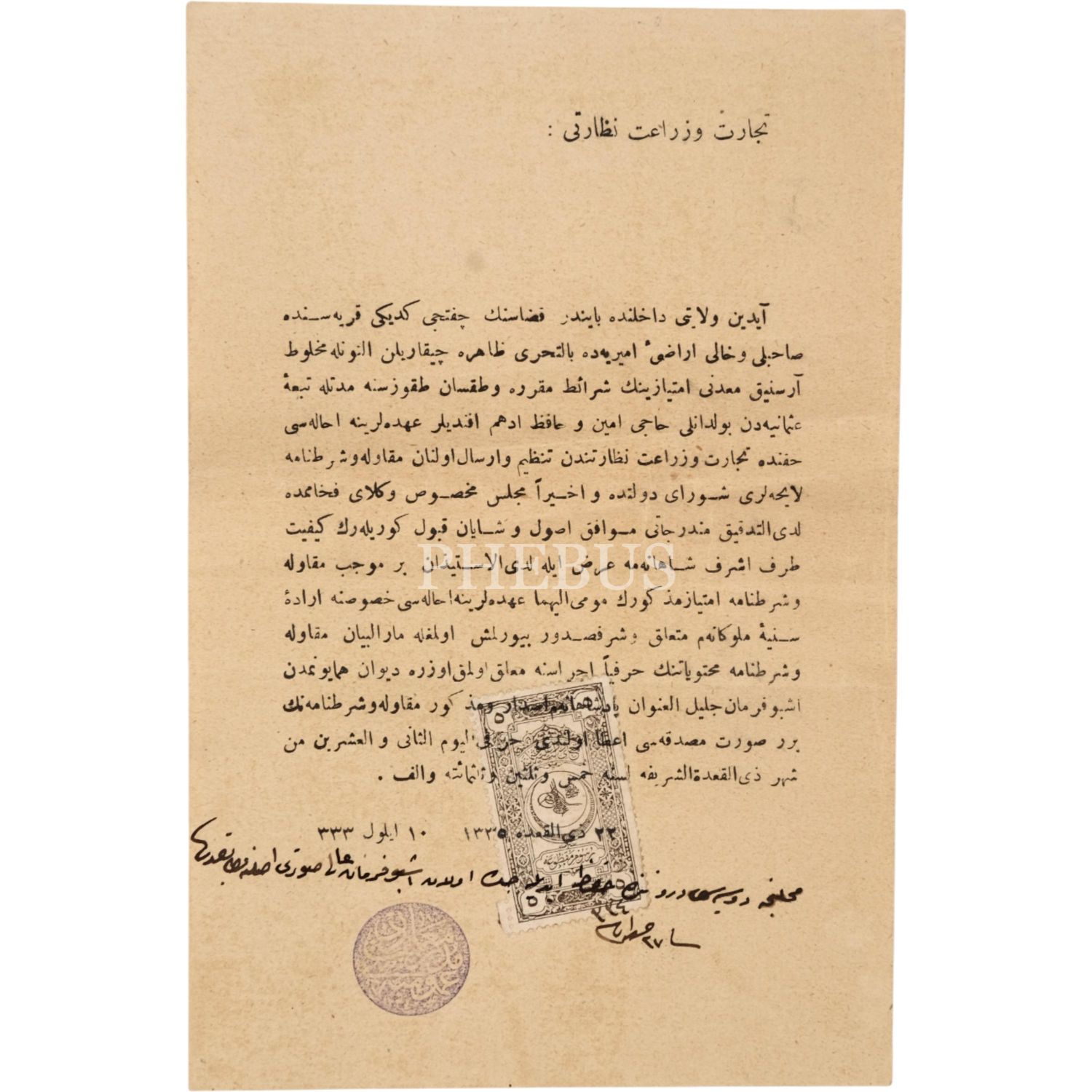 İzmir´in özellikle Efemçukuru, Kavacık ve Karaburun bölgelerinde, Osmanlı´nın son ve Cumhuriyet´in erken dönemlerinde kurulan altın ve simli kurşun madenleri hakkında çok sayıda evrak ve harita içeren lot...