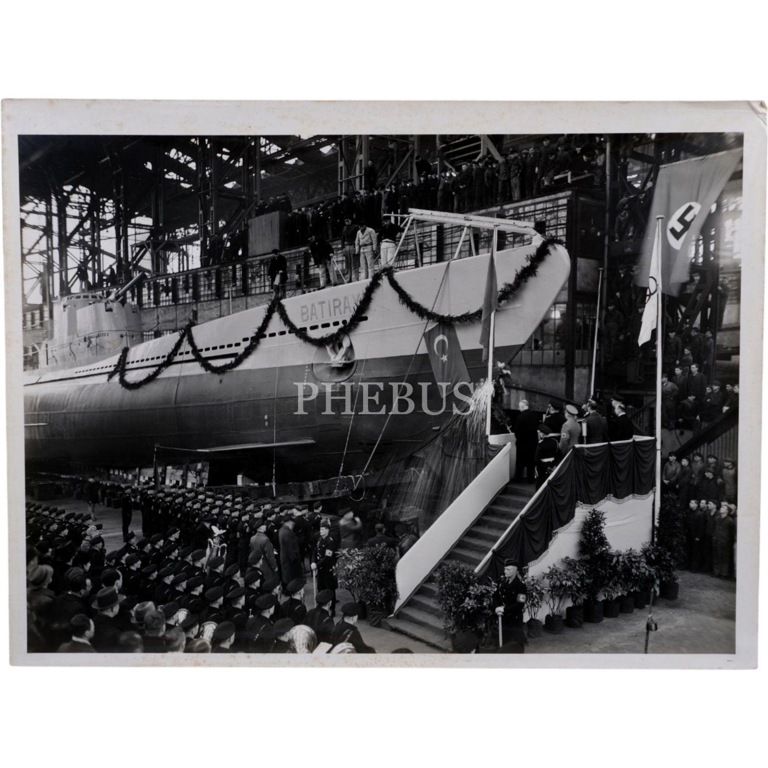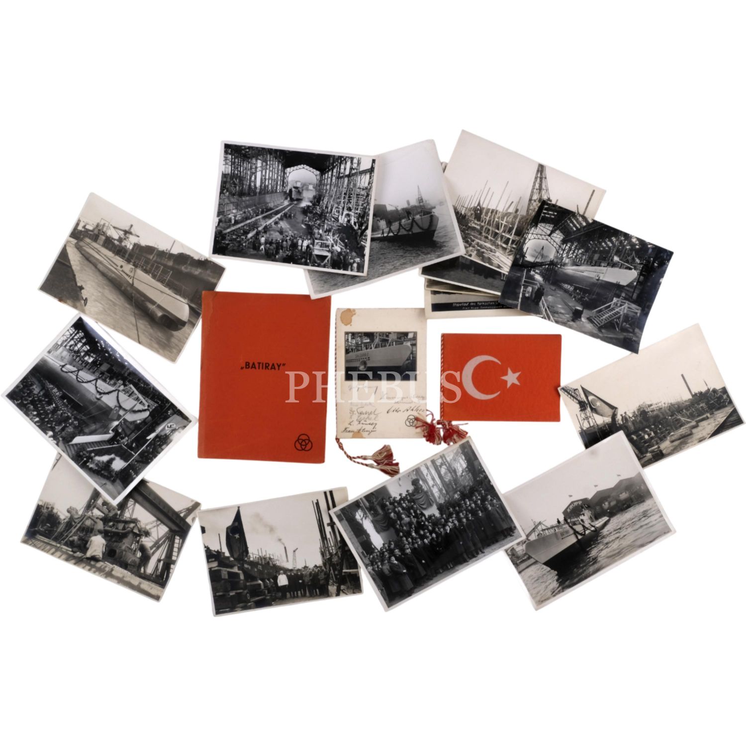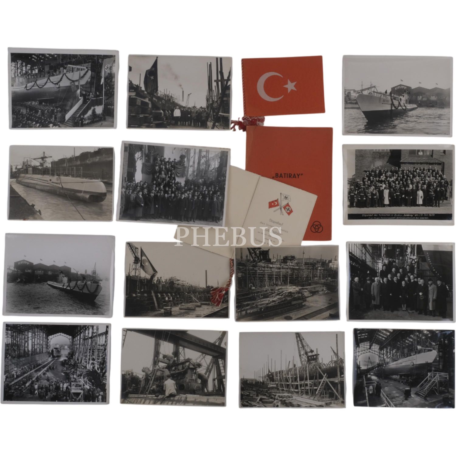 İsim babalığını Mustafa Kemal Atatürk´ün yaptığı ve Türkiye´nin ilk denizaltılarından olan Batıray ve Saldıray´ın Almanya´nın Kiel şehrinde bulunan Germaniawerft Tersanesi´ndeki inşa süreçleri ve suya indirilme merasimlerinden fotoğraflar ve Saldıray´ın suya indirlme merasiminin davetlilerden imzalı davetiyesi...