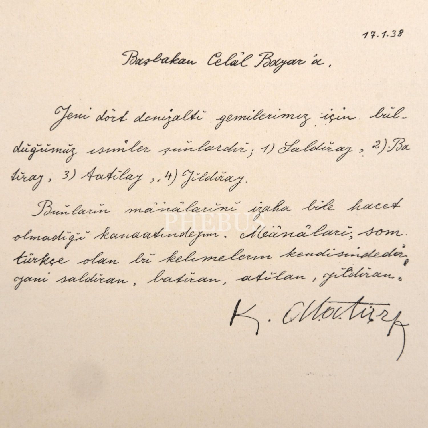 "Yeni dört denizaltı gemimiz için bildirdiğimiz isimler şunlardır: Saldıray, Batıray, Atılay, Yıldıray..."