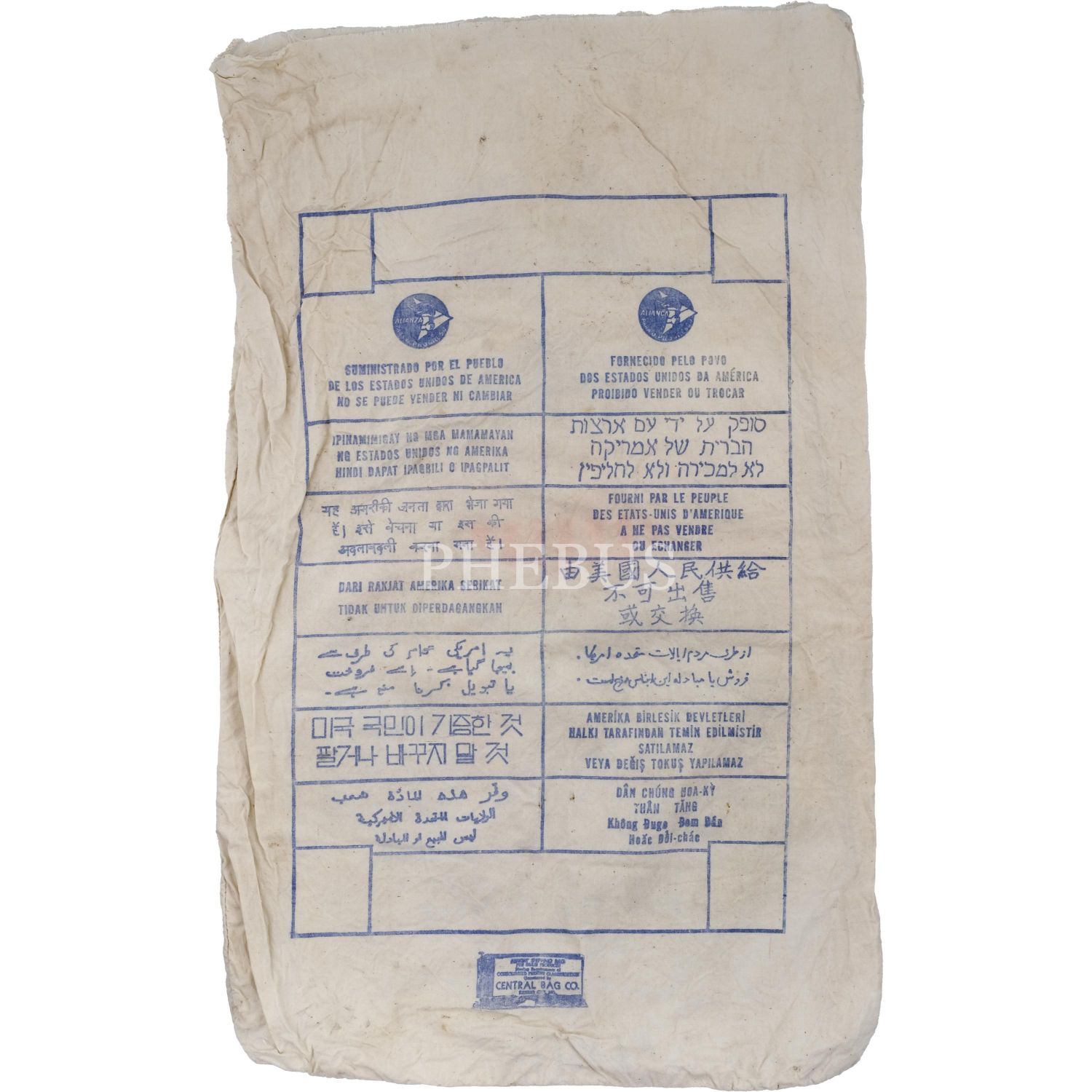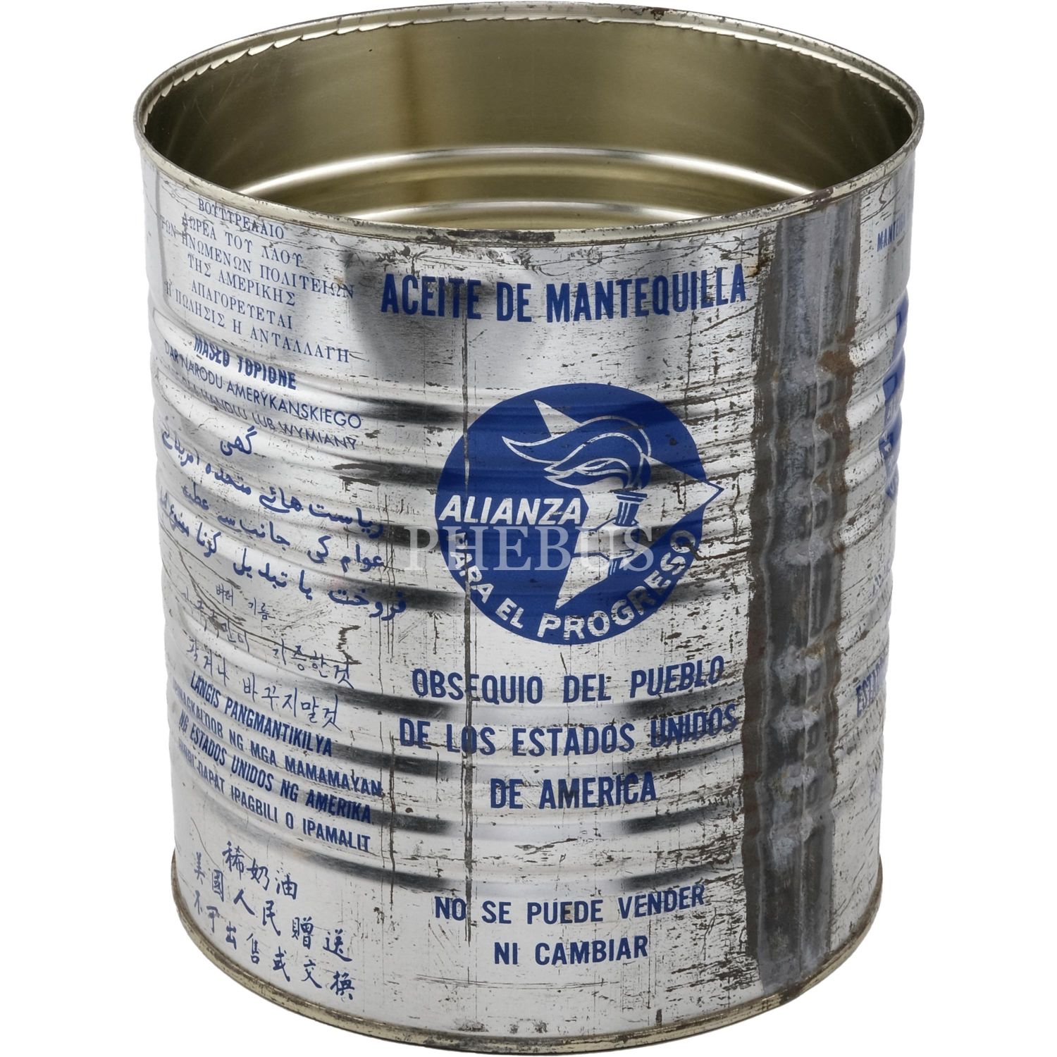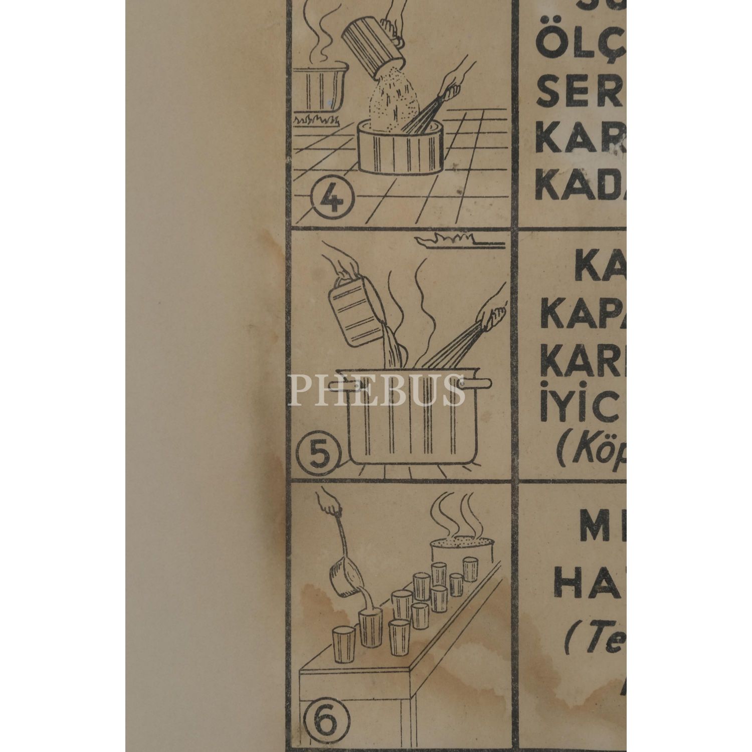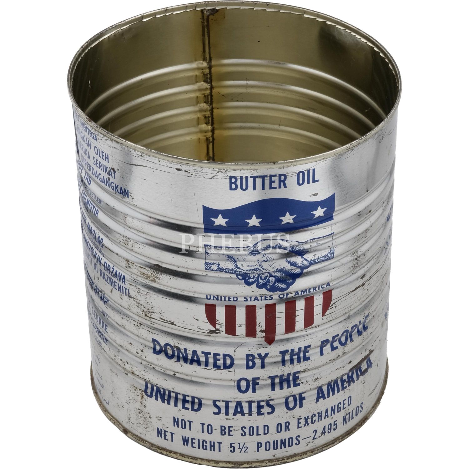 Marshall Planı ile Türkiye´ye gönderilen tereyağının orijinal tenekesi, zenginleştirilmiş unun çuvalı ve süt tozunun nasıl hazırlanacağını açıklayan afiş...