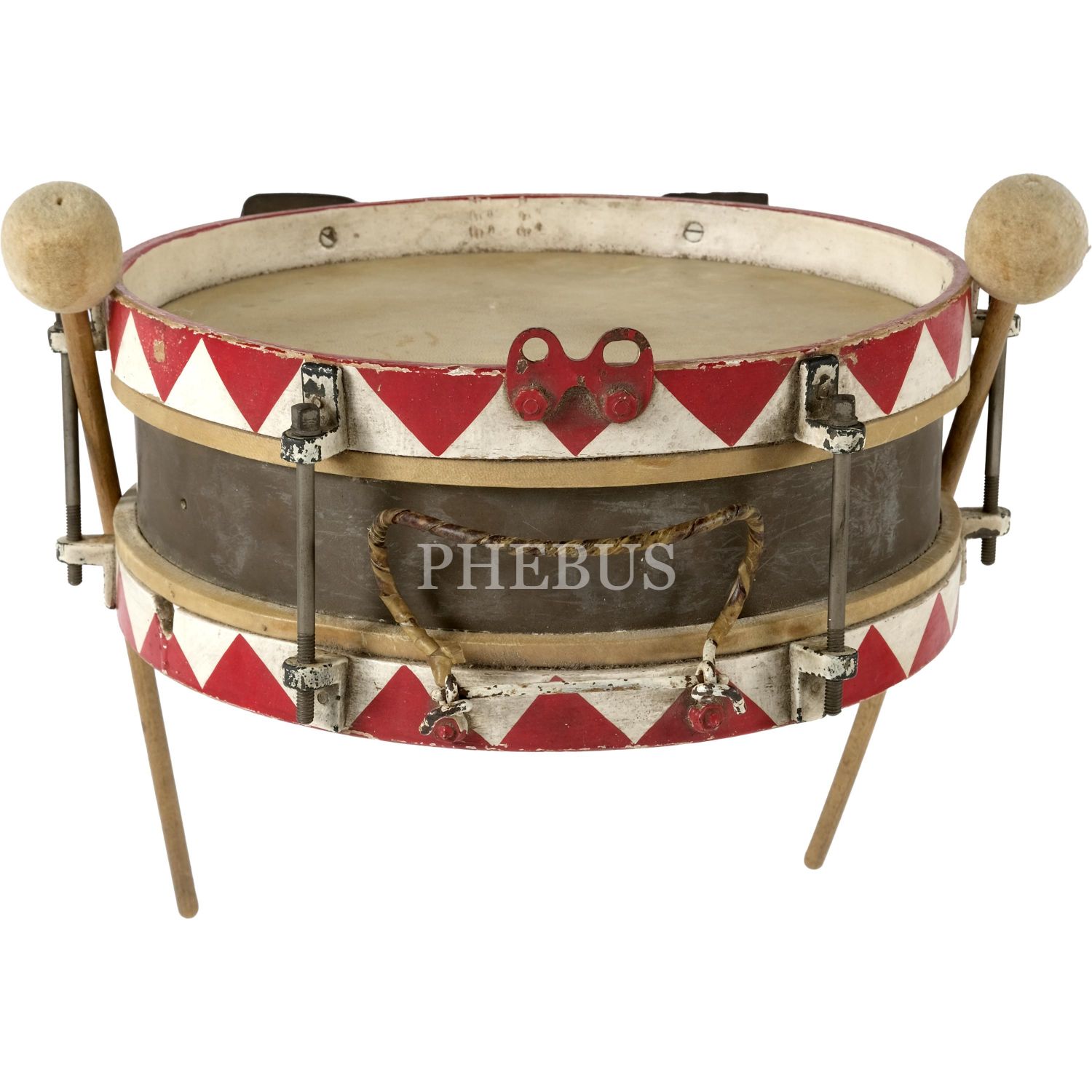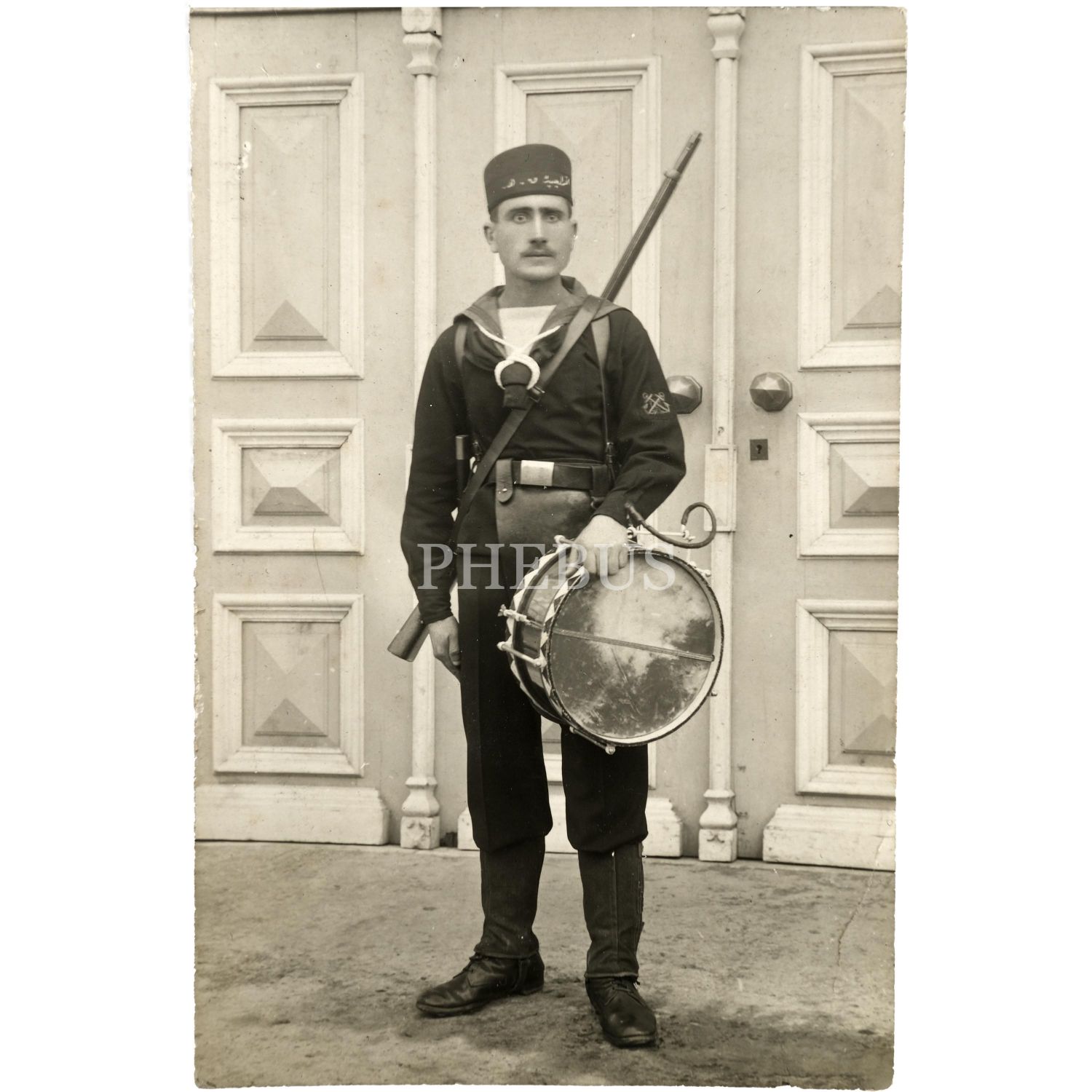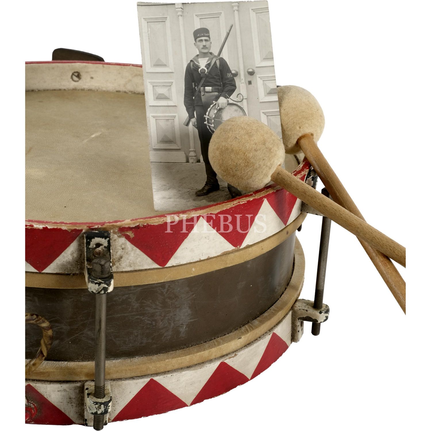 Osmanlı askerî bando davulu ve davulcu asker fotoğrafı, davul çapı: 33cm, fotoğraf: 9x14 cm...