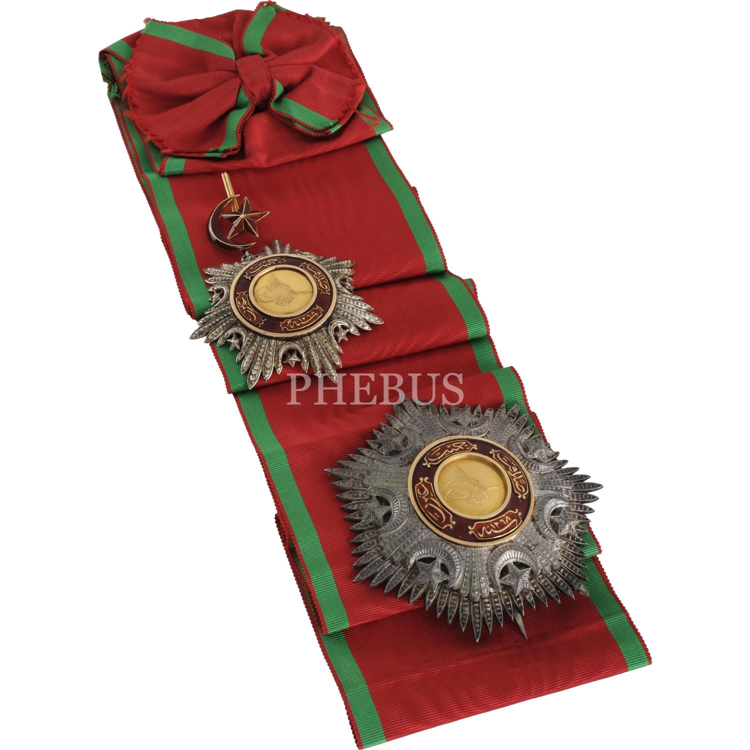 Kordon ucuna takılan Mecidî Nişanı ile kordonu ve boyuna asılan şemsesi...