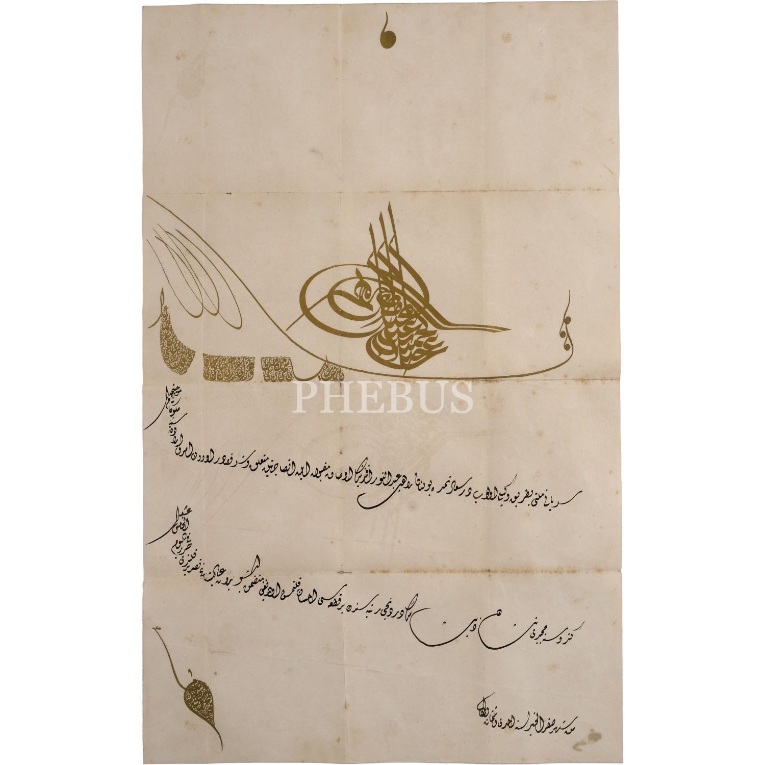 Süryani patrik vekili Abdünnur Efendi´nin aldığı 4. derece Mecîdî nişanının beratı, 1301 tarihli, 36x57 cm...