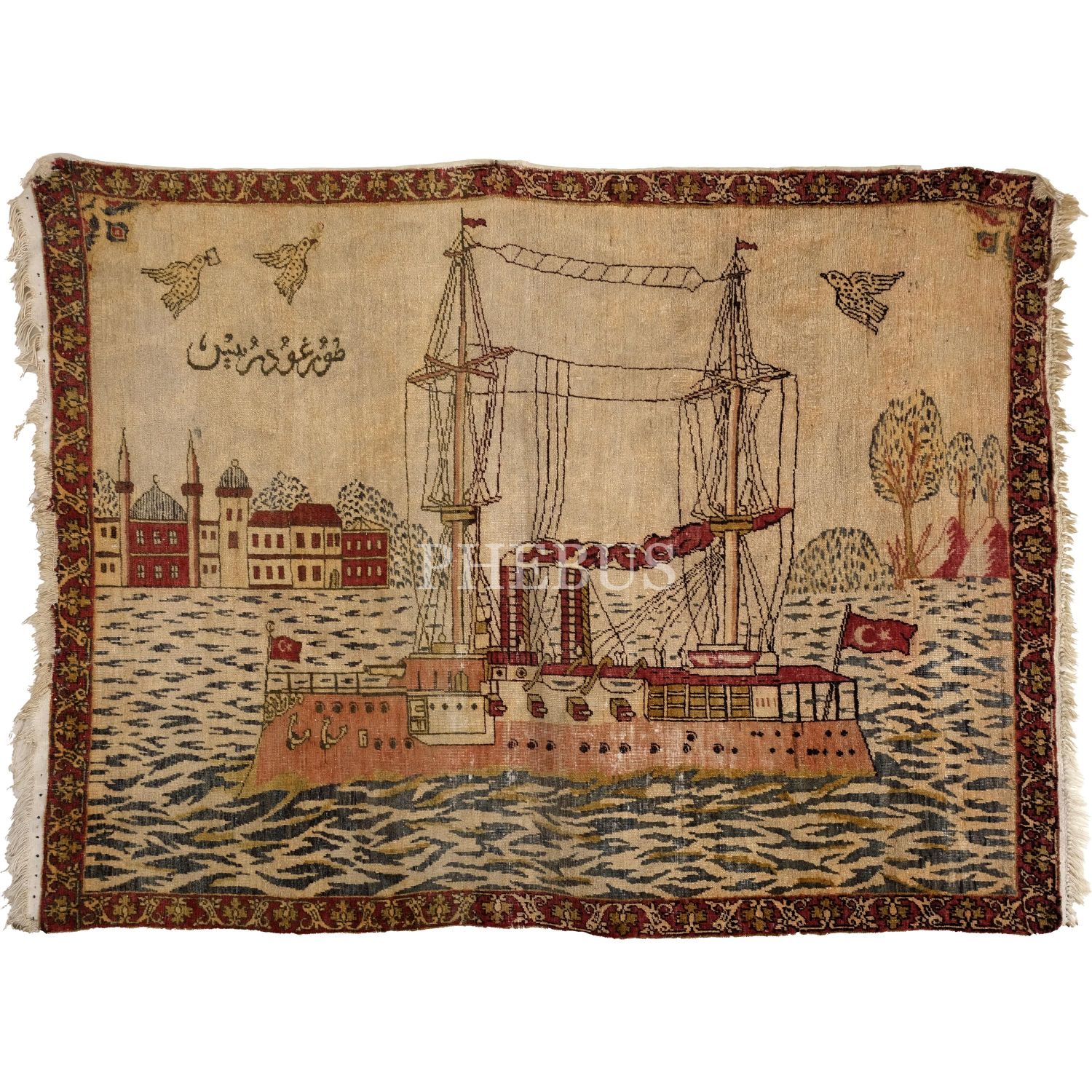 Turgut Reis Zırhlısı´nın betimlendiği halı, 130x170 cm...