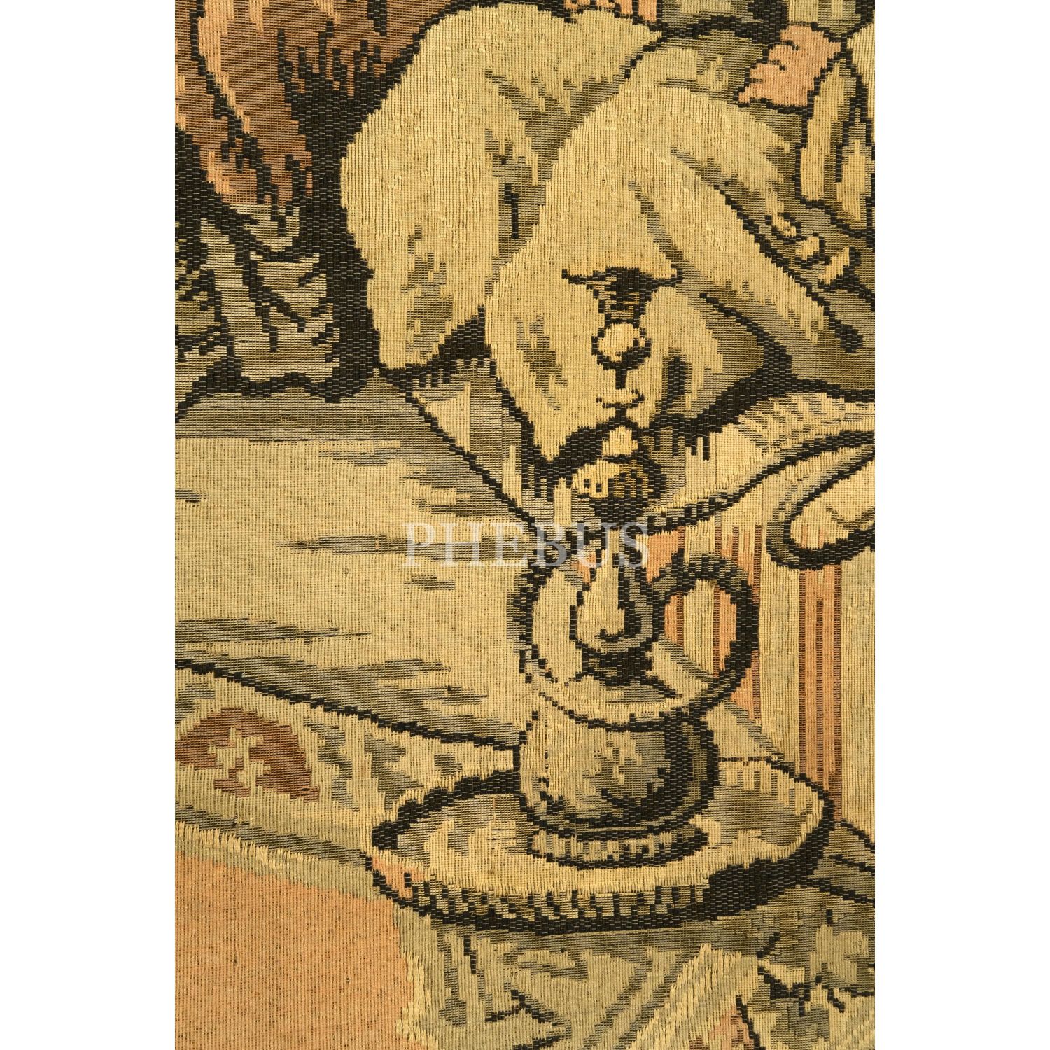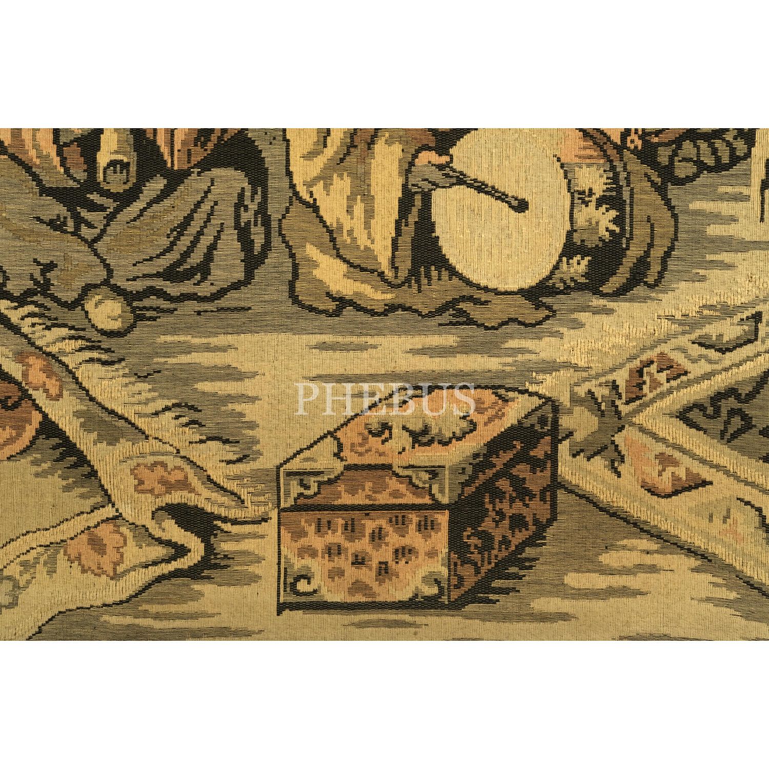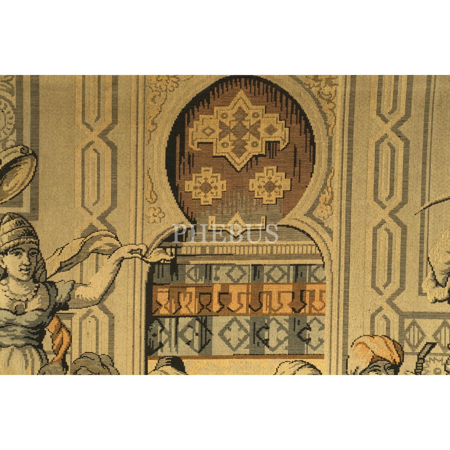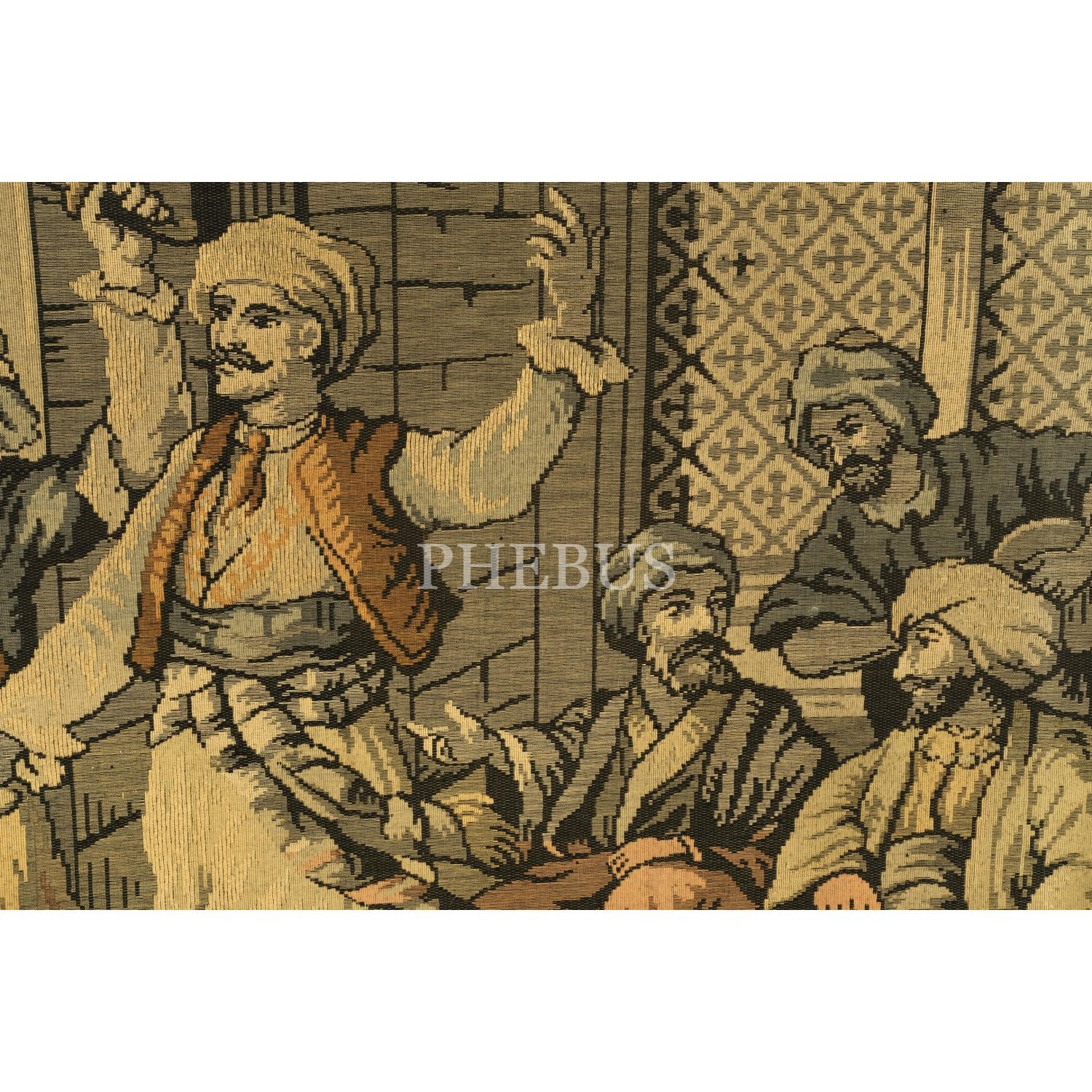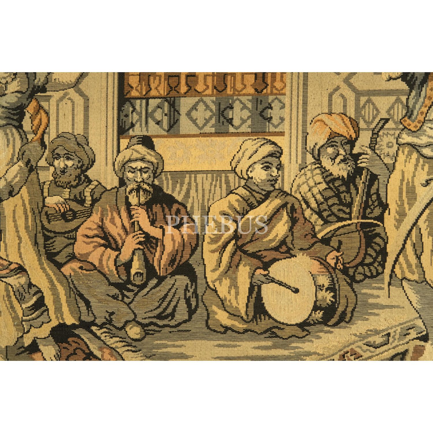 Bir tarafta dans eden oryantallerin ve bir tarafta eli kılıçlı Osmanlı beylerinin betimlendiği goblen halı, halı ölçü: 251x121 cm, çerçevesiyle: 276x145 cm...
