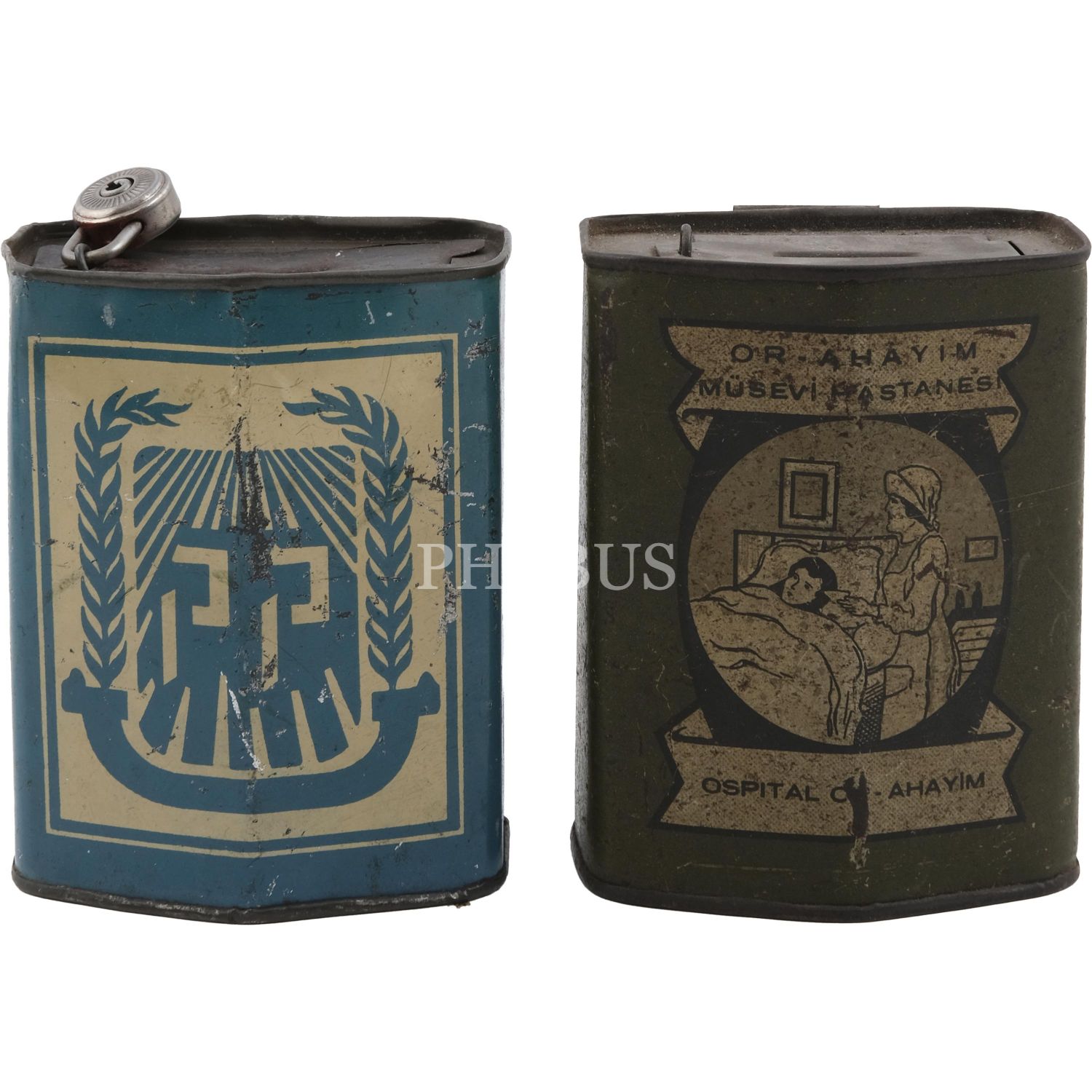 Or-Ahayim Balat Musevi Hastanesi´ne ait 2 adet kumbara, 10x13x6 cm...