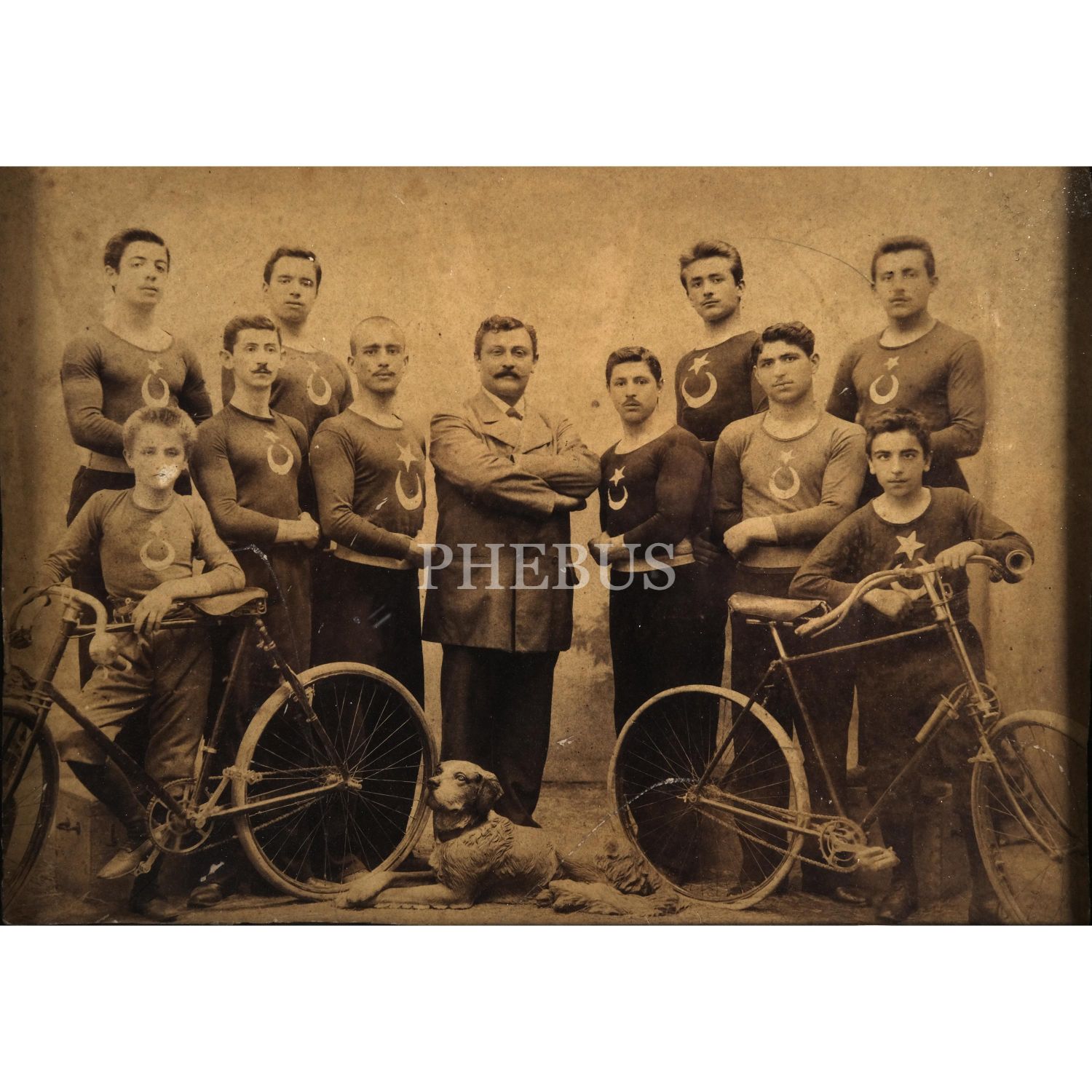 Ay yıldızlı formalarıyla poz veren Milli bisikletçilerimizin hatıra fotoğrafı, 50x42 cm...