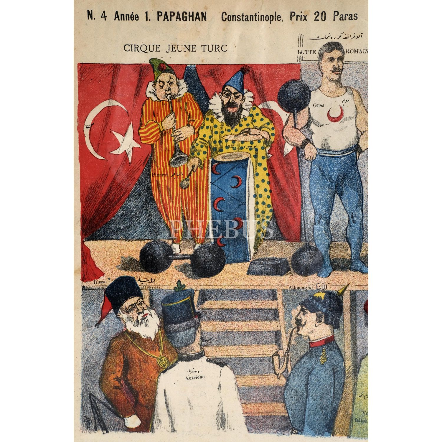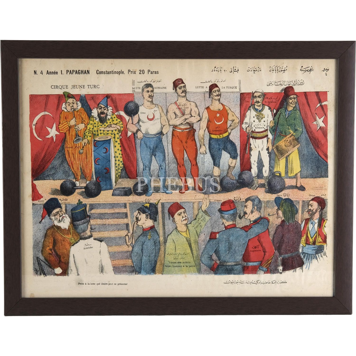 Musavver Papağan Dergisinin 4. sayı eki olarak verilen, Osmanlıca JÖN TÜRK CANBAZHÂNESİ ve Fransızca CIRQUE JEUNE TURC başlıklı afiş, çerçeve içi ölçü: 54x40 cm...