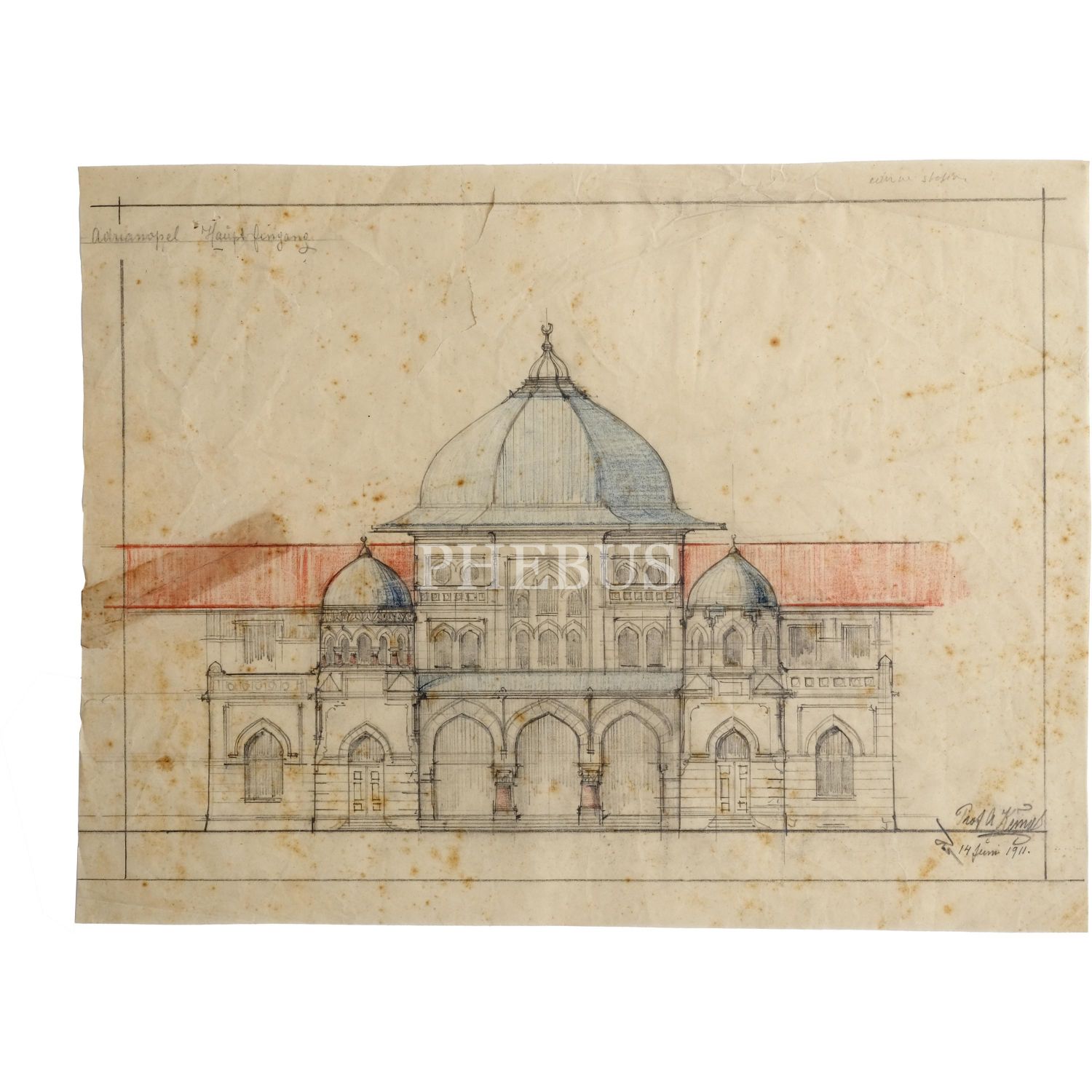 Mimar Kemaleddin imzalı Karaağaç istasyonu çizimi, 1911, 45x34 cm...