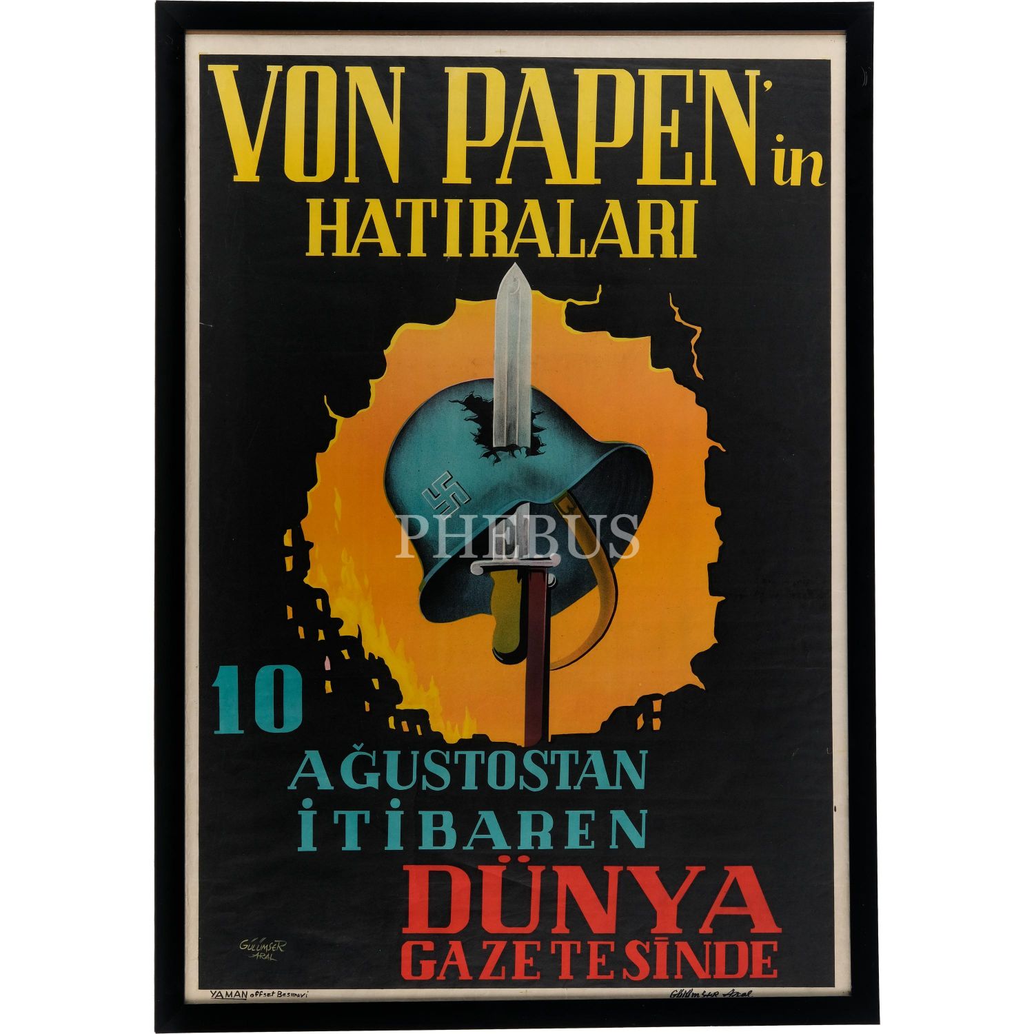 Gülümser Aral´ın ıslak imzasıyla "VON PAPEN´İN HATIRALARI 10 AĞUSTOS´TAN İTİBAREN DÜNYA GAZETESİNDE" yazılı baskı duyuru afişi, afiş ölçü: 69x100 cm...