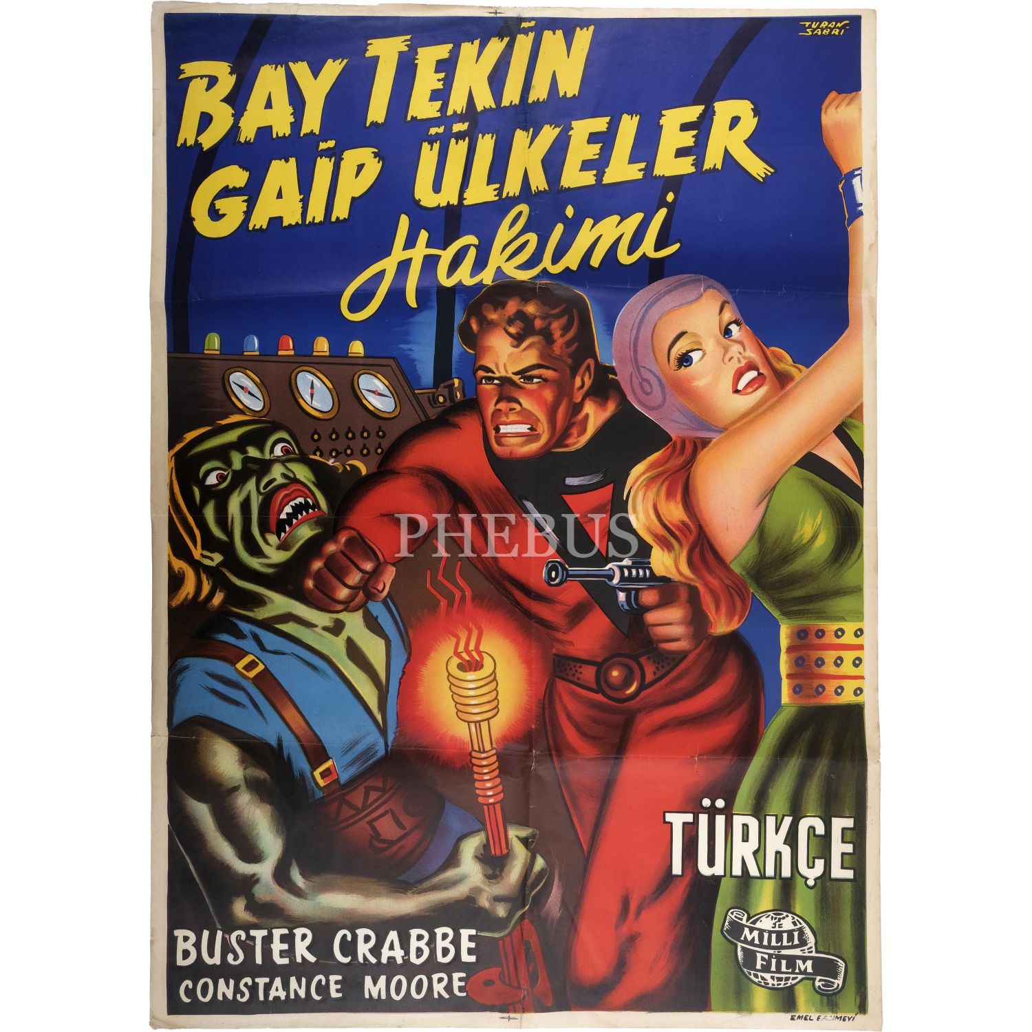 Turan Sabri tasarımlı "BAY TEKİN: GAİP ÜLKELER HAKiMİ" filminin afişi, "Millî Film", Emel Basımevi, 70x100 cm...