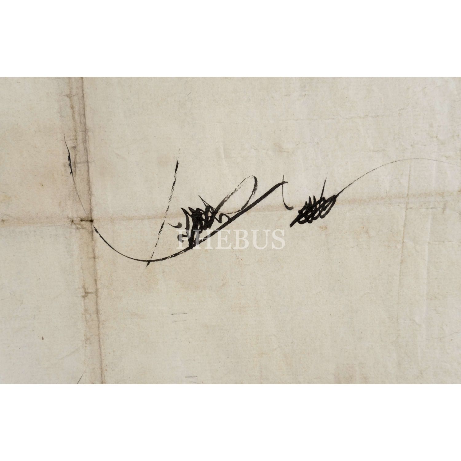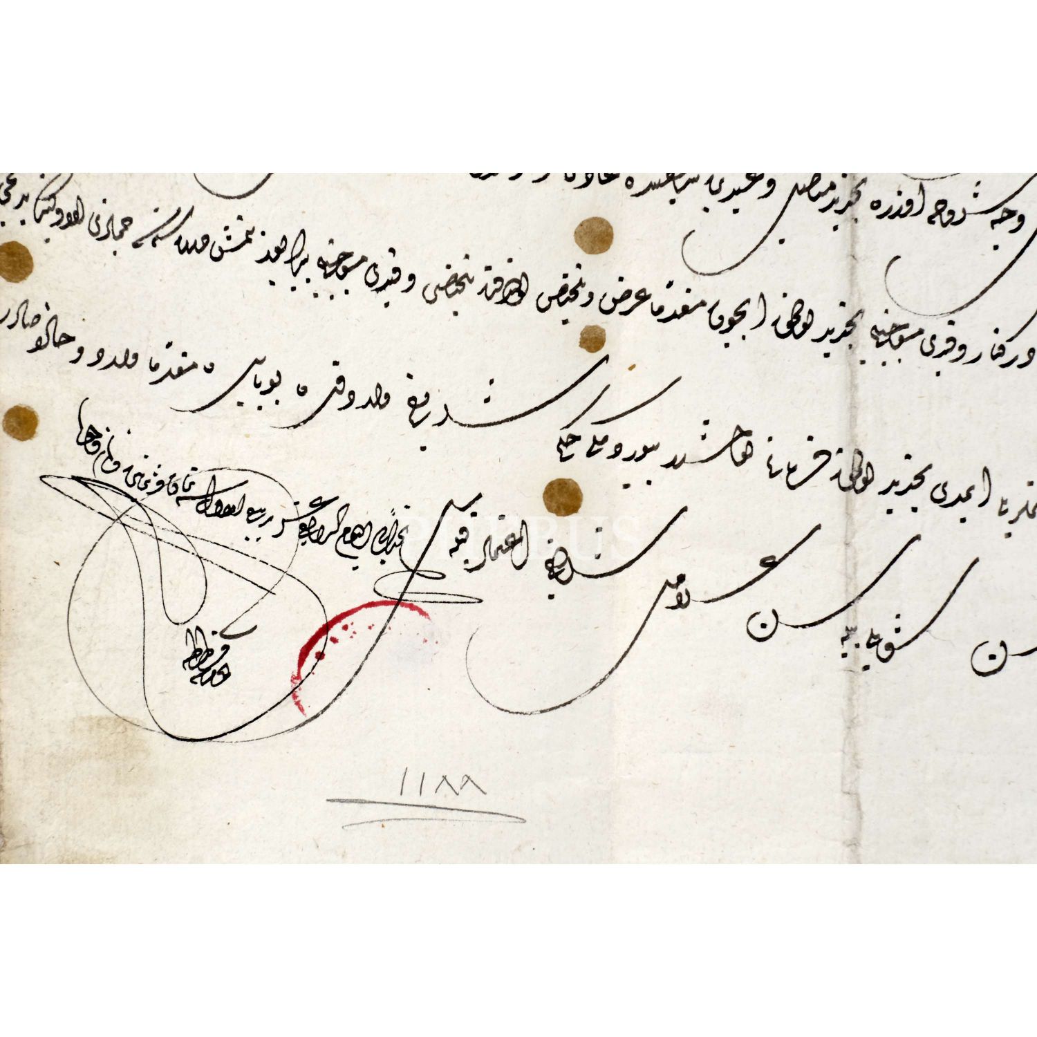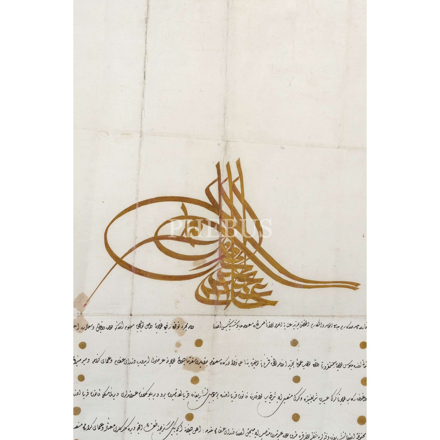 Altın el çekme Sultan 1. Abdülhamid tuğralı saray çalışanlarının maaşına dair ferman, 1188 tarihli, 53x77 cm...