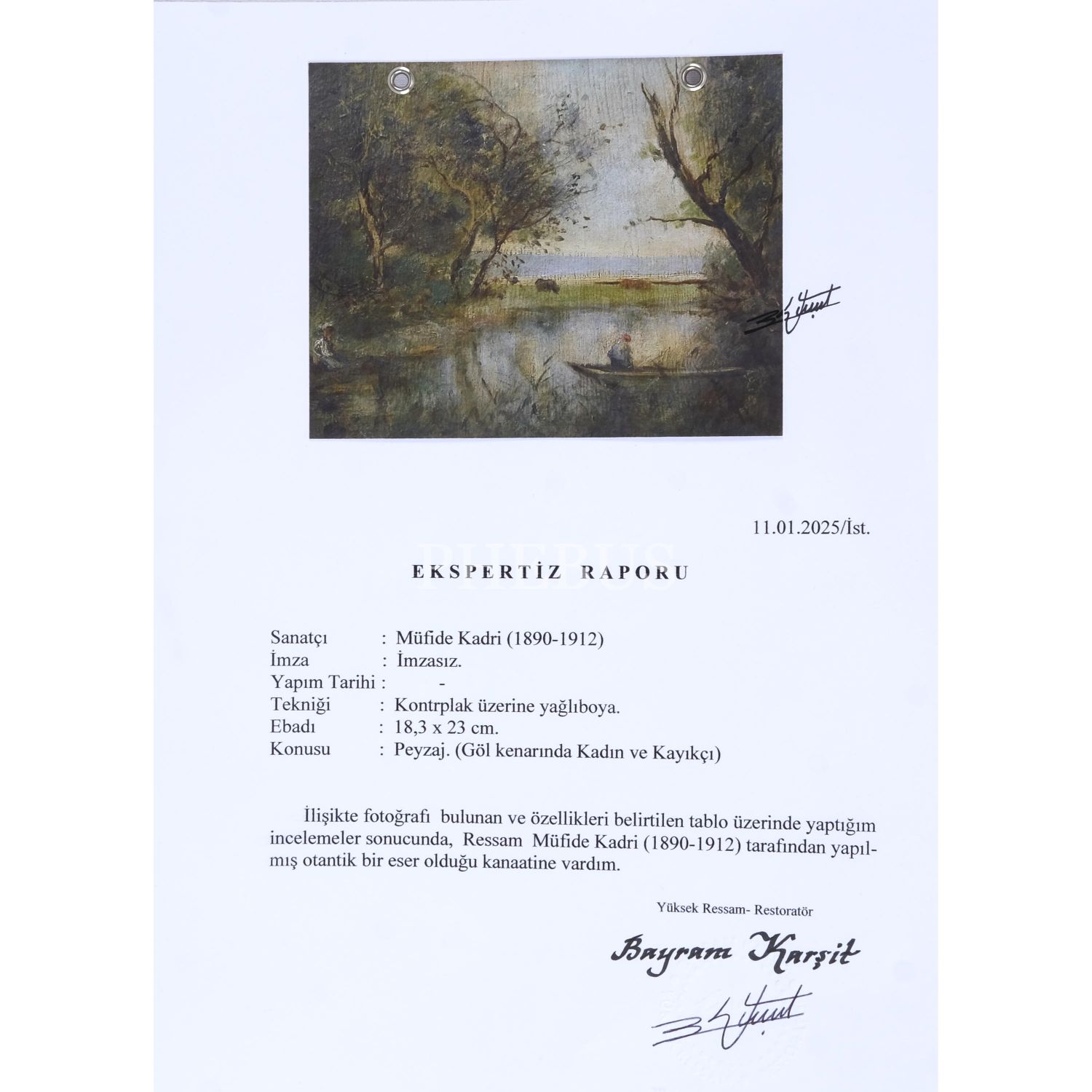 İmzasızdır. Bayram Karşit imzalı ekspertiz raporu mevcuttur.