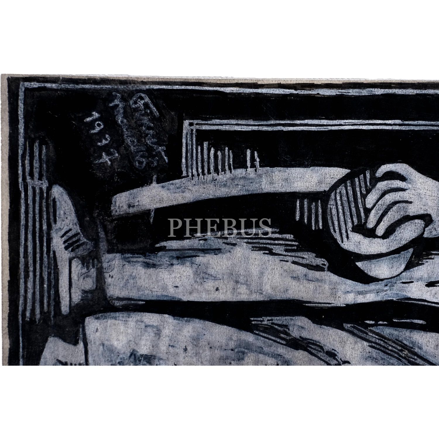 Hiçbir akımdan etkilenmeyen, hiç kimseye benzemeyen, özgün tarzıyla olduğu kadar; parasızlık, ilgisizlik ve sıkıntılarla geçen, zaman zaman yolu akıl hastanesine uğrayan çalkantılı ve bohem yaşamıyla da efsaneleşen Fikret Mualla´nın, erken dönemlerinde muhtemelen bir dergide yayımlanmak üzere çizdiği özgün deseni...