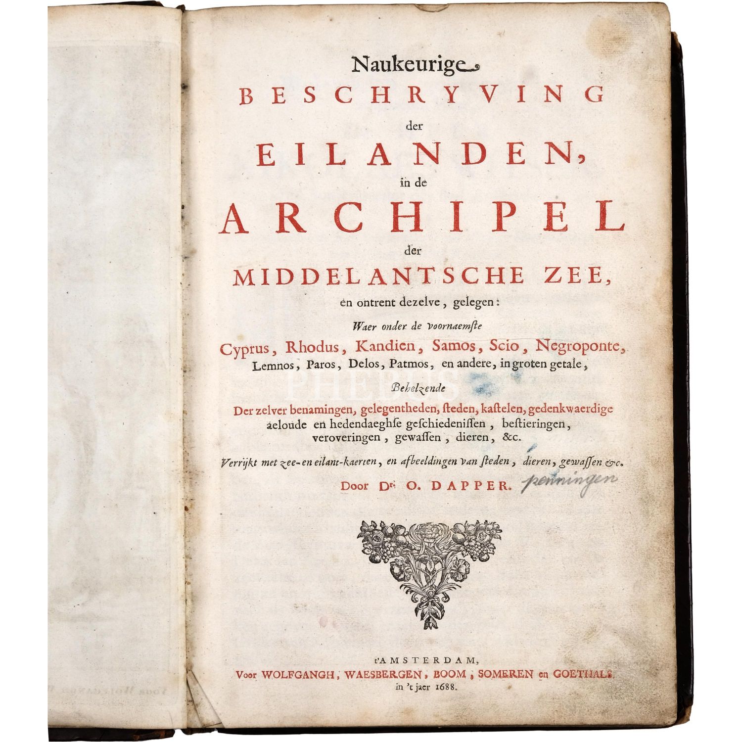 NAUKEURIGE BESCHRYVING DER EILANDEN, IN DE ARCHIPEL DER MIDDELANTSCHE ZEE, Door dr. O. Dapper, 1688, Someren en Goethals, Amsterdam, 92+84+313+40 sayfa, 22x33 cm...