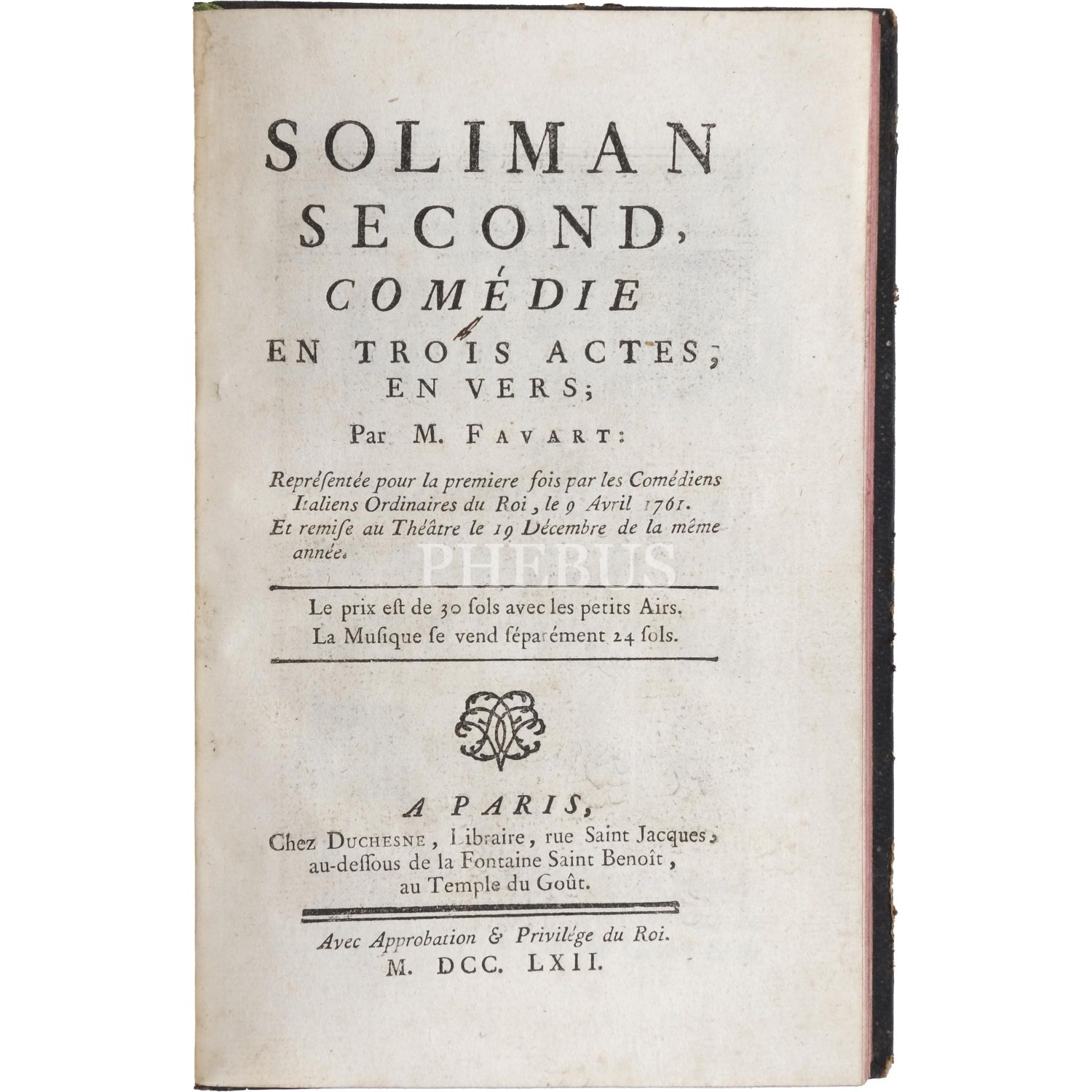 SOLIMAN SECOND, M. Favart, 1762, Paris: chez Duchesne, 102 sayfa, 13x20 cm...