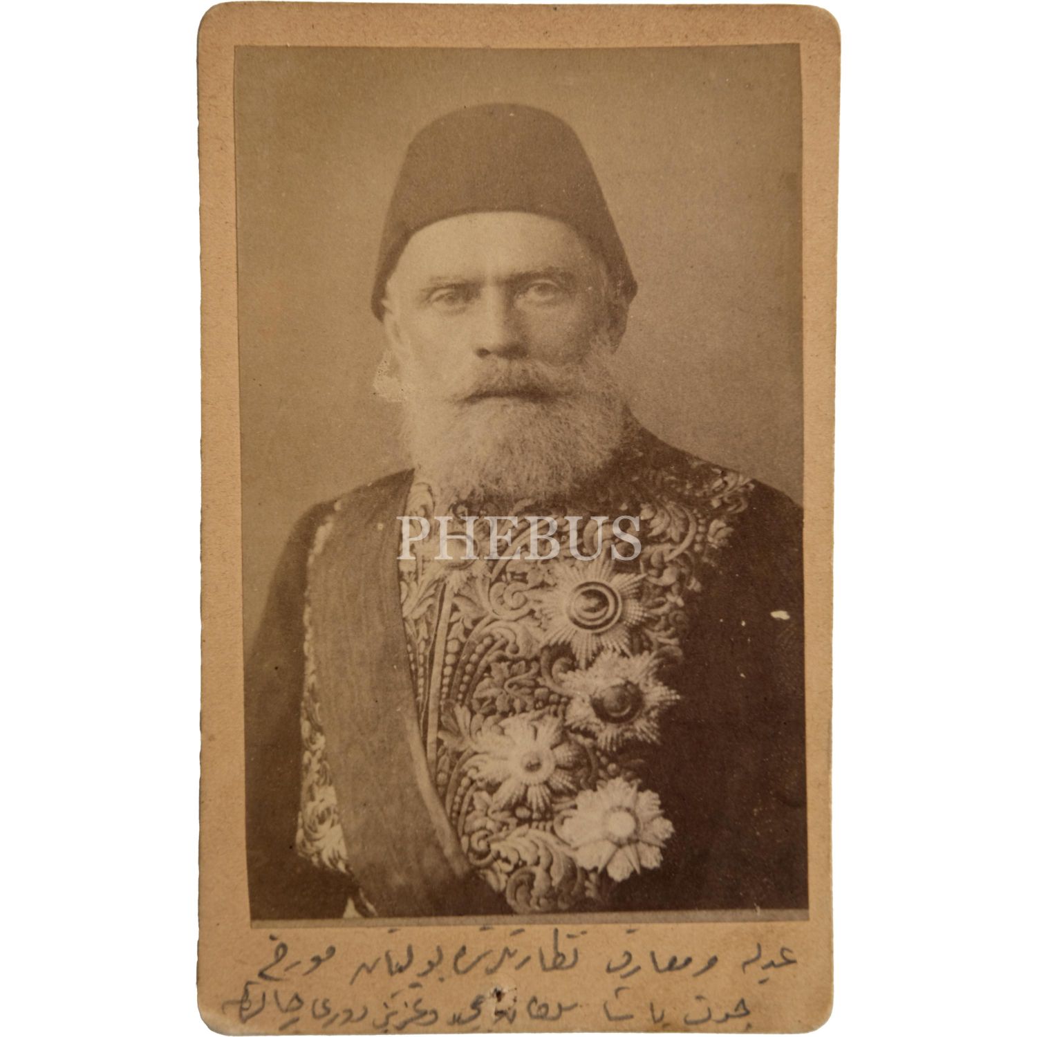Osmanlı Devlet adamı, tarihçi ve hukukçu Ahmet Cevdet Paşa´nın üniforması ve madalyalarıyla çektirdiği stüdyo fotoğrafı, 6x11 cm...