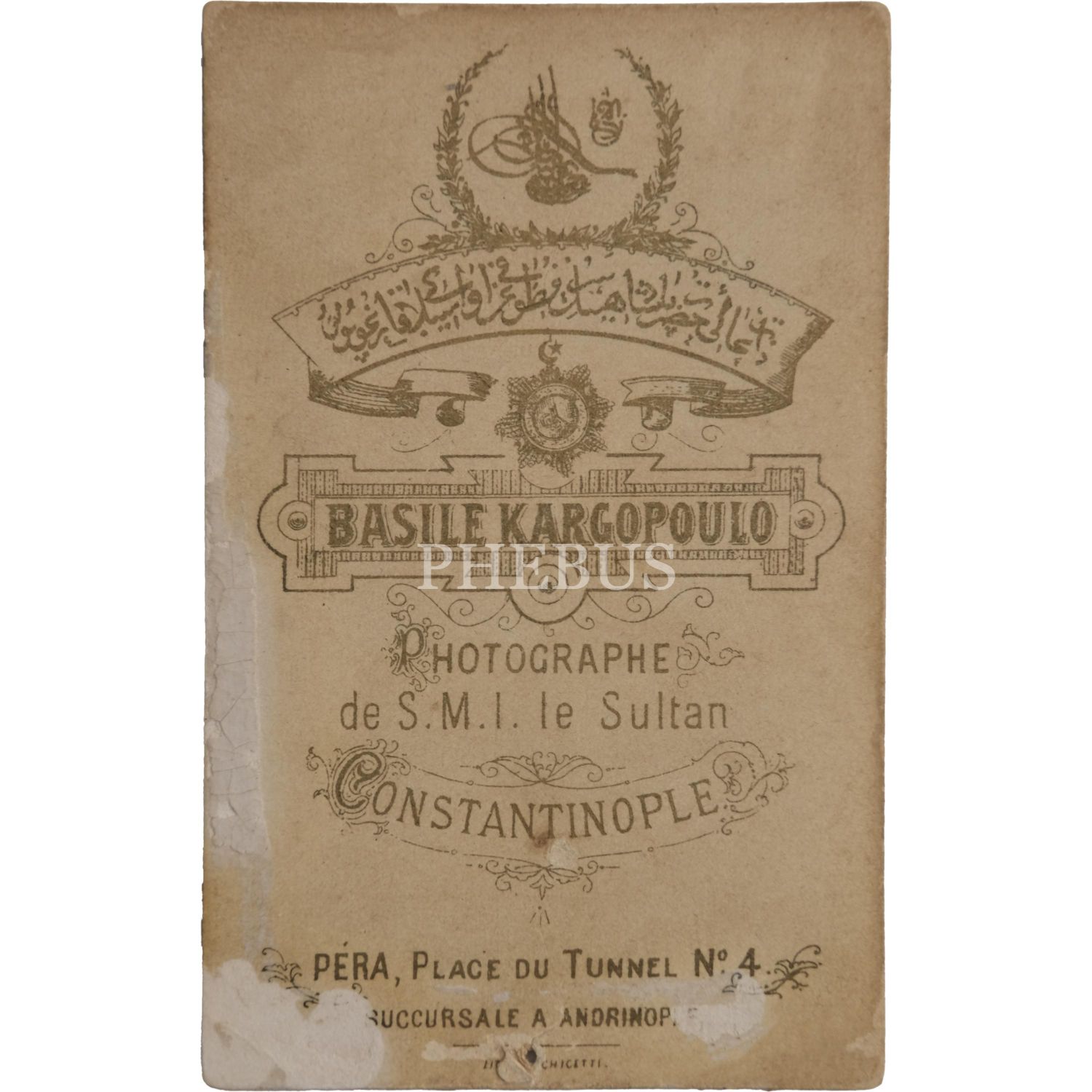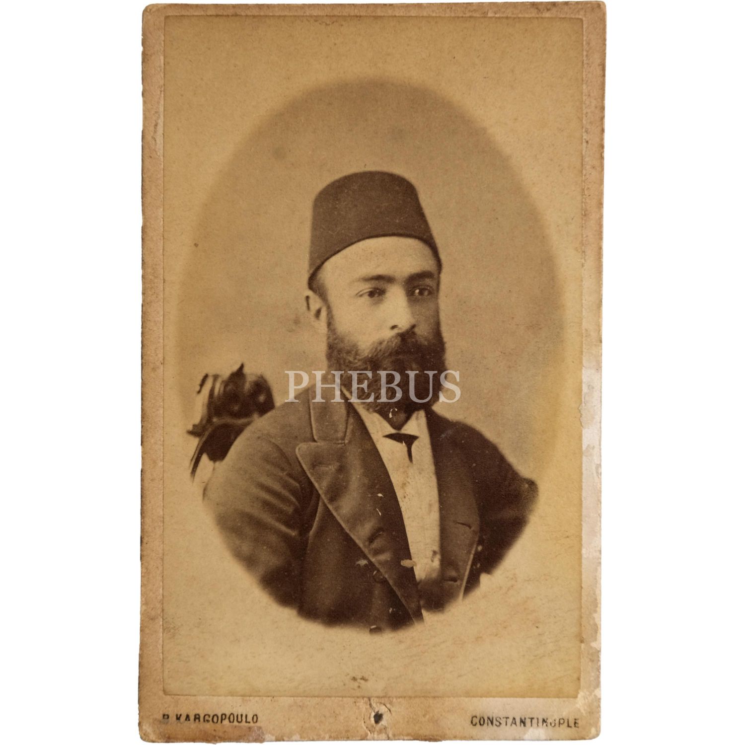 Mizan gazetesi nâşiri ve tarihçi Mizancı Murad Bey´in Basile Kargopoulo Fotoğrafhanesi´nde çektirdiği stüdyo fotoğrafı, 7x10 cm...