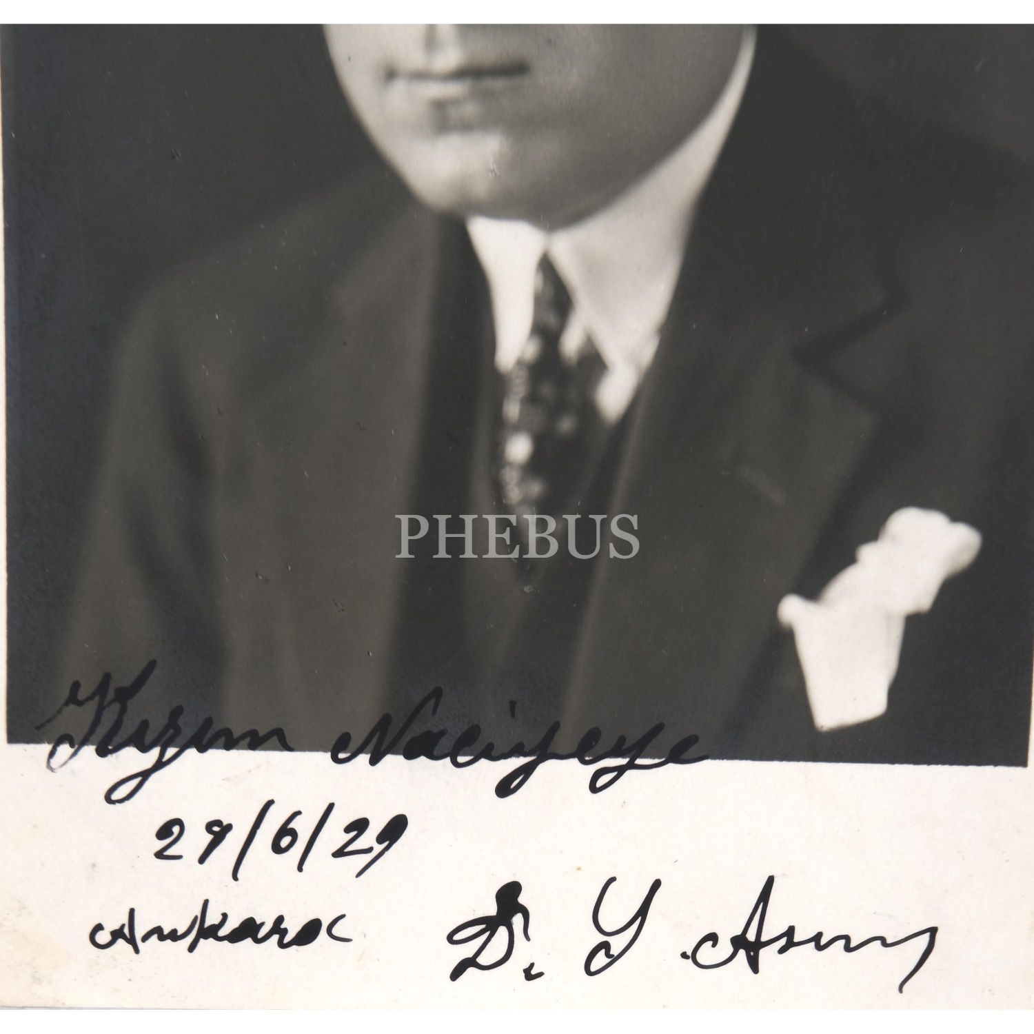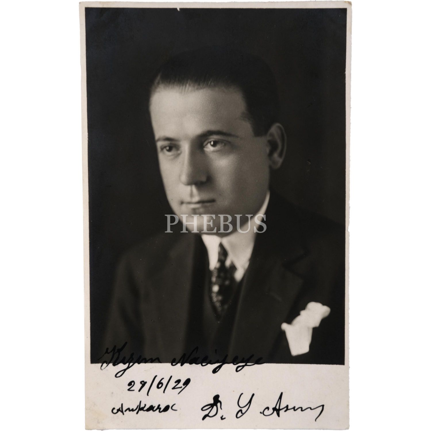 Cumhuriyet Dönemi klasik Türk müziği bestekârı, güftekârı ve icracısı Yesari Asım Arsoy´un ithaflı ve imzalı fotoğrafı, 9x14 cm...