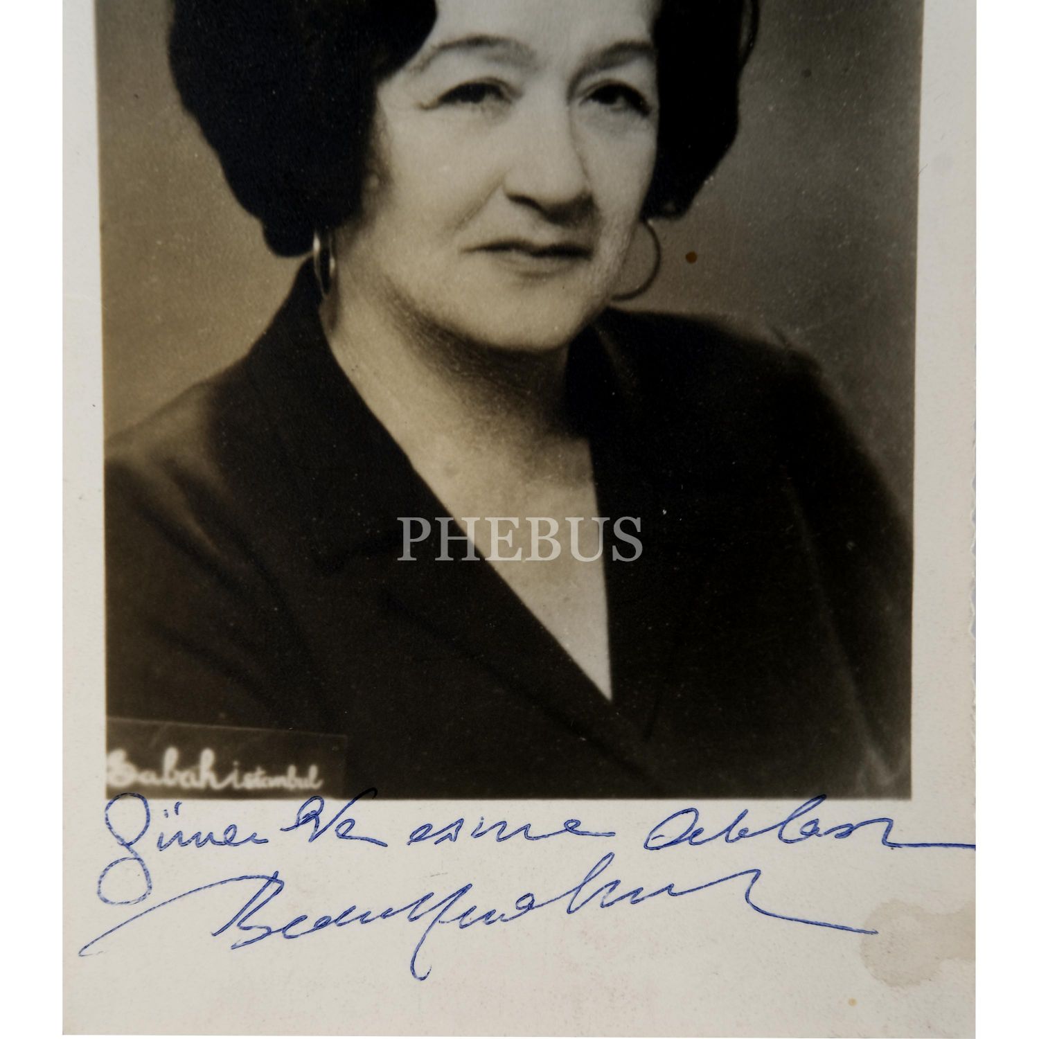 Türk sinema ve tiyatrosunun ilk kadın oyuncularından Bedia Muvahhit´in ithaflı ve imzalı fotoğrafı, 9x14 cm...