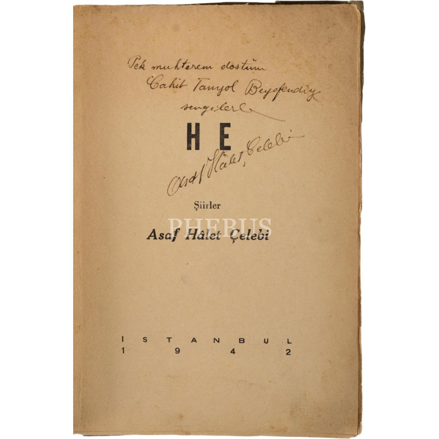 HE - ŞİİRLER, Asaf Halet Çelebi, Ahmet Sait Matbaası, İstanbul, 1942, 47 sayfa, 18x26 cm...