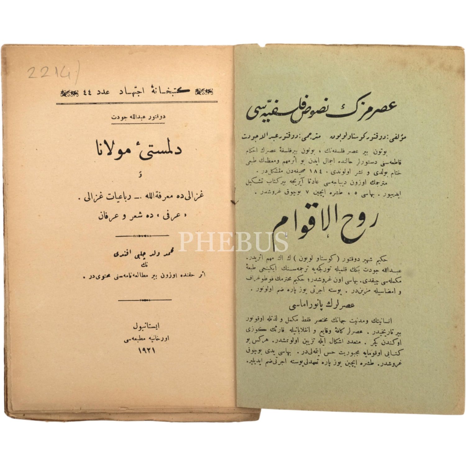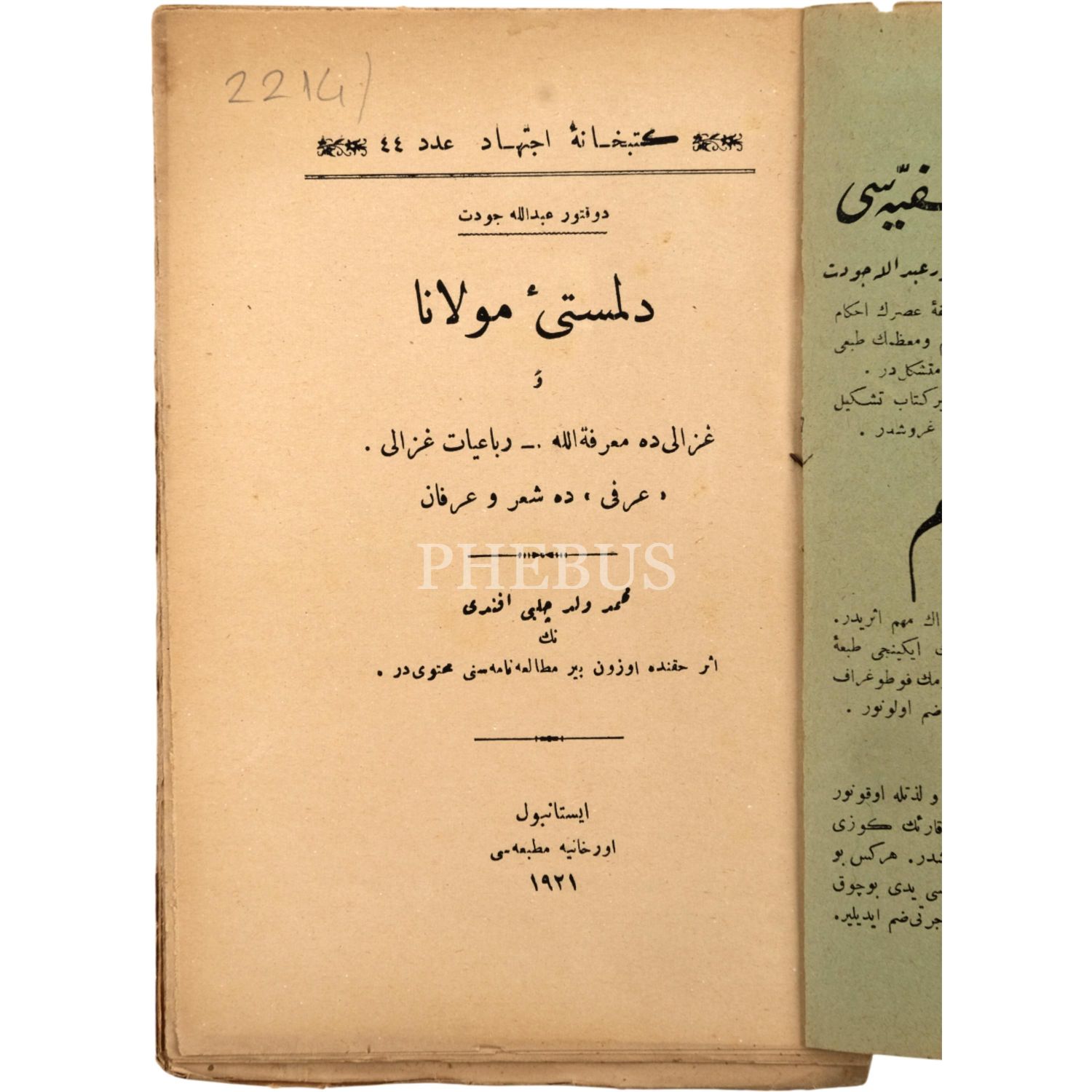 DİLMESTÎ-İ MEVLÂN VE GÂZÂLδDE MARİFETULLAH, Doktor Abdullah Cevdet, 1921, Orhaniye Matbaası, 128 sayfa, 13x19 cm...