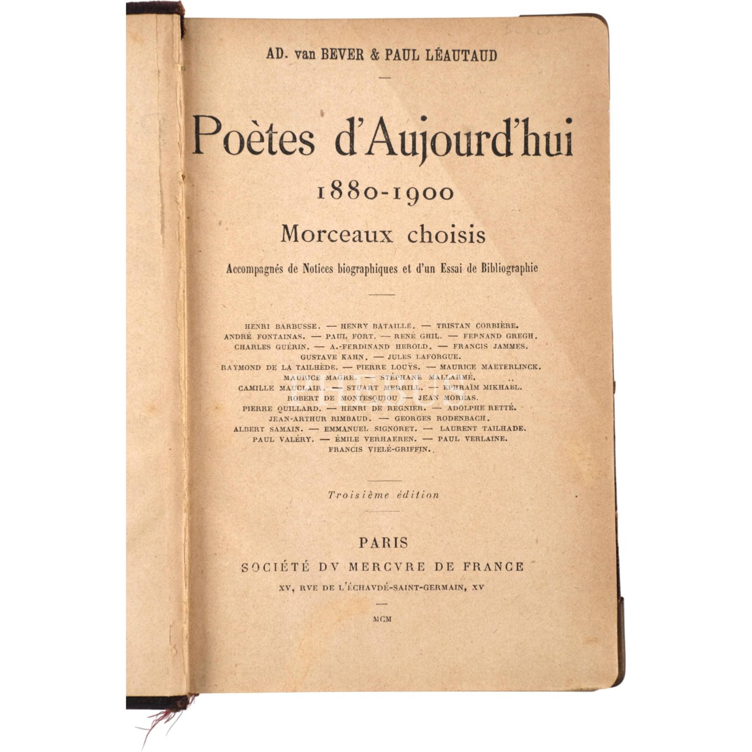 POETES D´AUJOURD´HUI 1880-1990, Ad. van Bever & Paul Léautaud, 1900, Paris, 424 sayfa,12x18 cm...