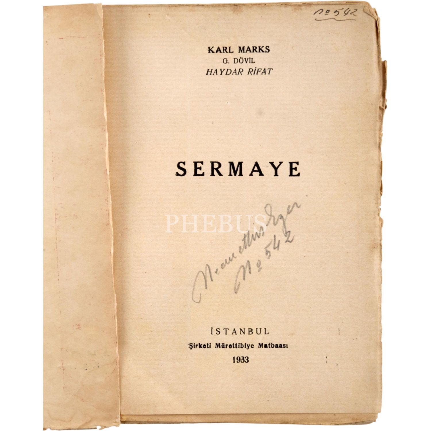 SERMAYE, Karl Marks&G Dövil&Haydar Rifat, Şirketi Mürettibiye Matbaası, İstanbul, 1933, 303 sayfa, 13x19 cm,