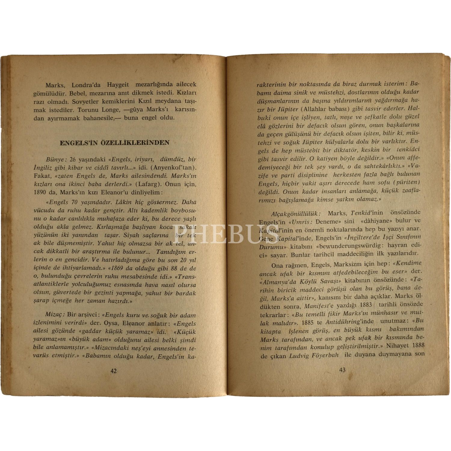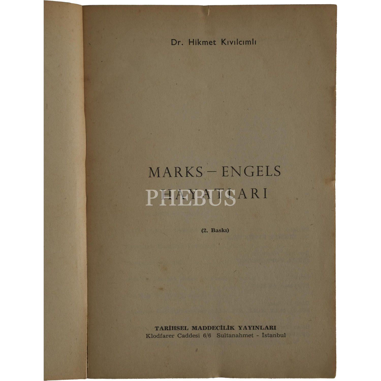 Türkiye sosyalist sol tarihinin, ömrünün üçte birini hapislerde geçirmiş, en dirençli, en inatçı ve en üretken kalemi Doktor Hikmet Kıvılcımlı´dan Marks ve Engels´in kısa biyografileri... "Sevgi Saygı değer Prof. Dr. İsmet Sungurbey´e" ithafıyla 9 Ocak 1971 tarihinde imzalanmıştır.