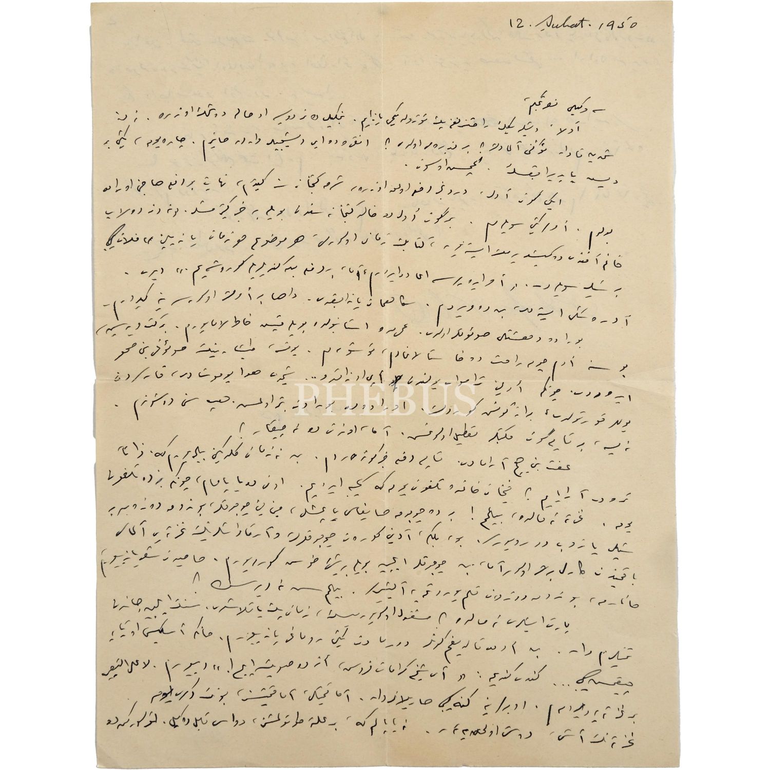 Şükûfe Nihal´in 12 Şubat 1950 tarihinde Halide Nusret Zorlutuna´ya gönderdiği mektubu, 22x29 cm...