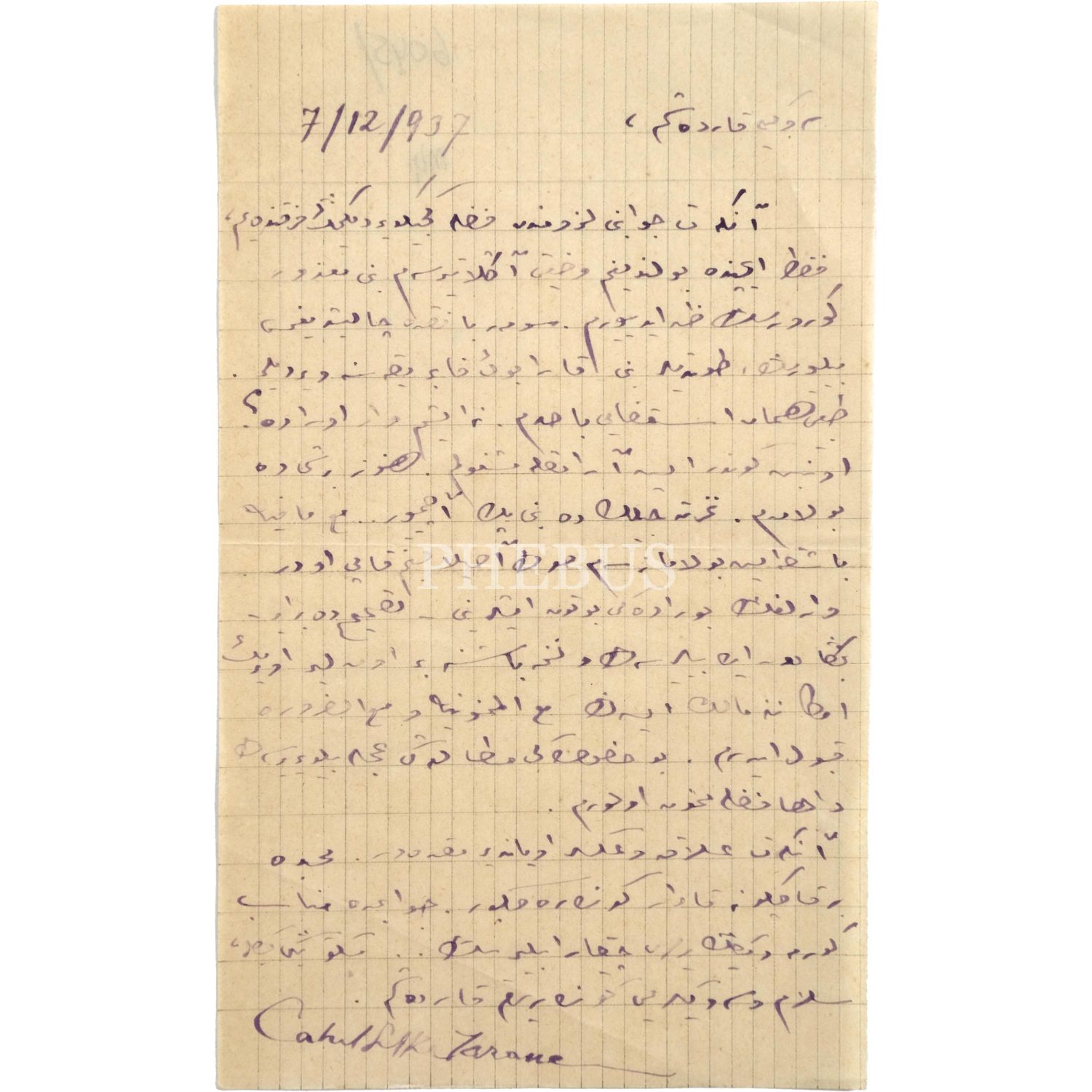 Cahit Sıtkı Tarancı´nın, Varlık Dergisi kurucusu Yaşar Nabi Nayır´ın sunduğu iş teklifi için kaleme aldığı mektubu, 13x20 cm...